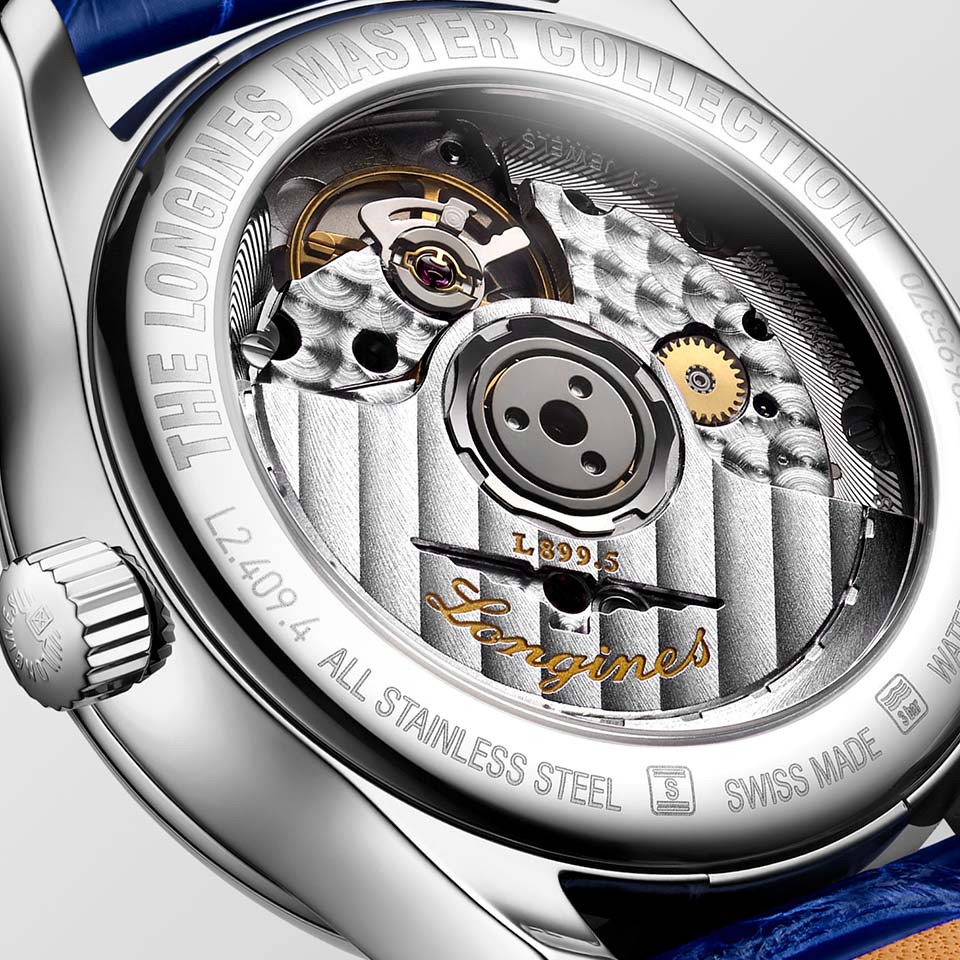 Bộ máy Longines Caliber L899 chuyển động cơ học tự động lên dây cót tốc độ 25'200 rung động mỗi giờ, dự trữ năng lượng lên đến 72 giờ. Mặt số khảm xà cừ trắng đính 12 viên kim cương Top Wesselton VS-SI diamonds, tổng số 0.055 carats.