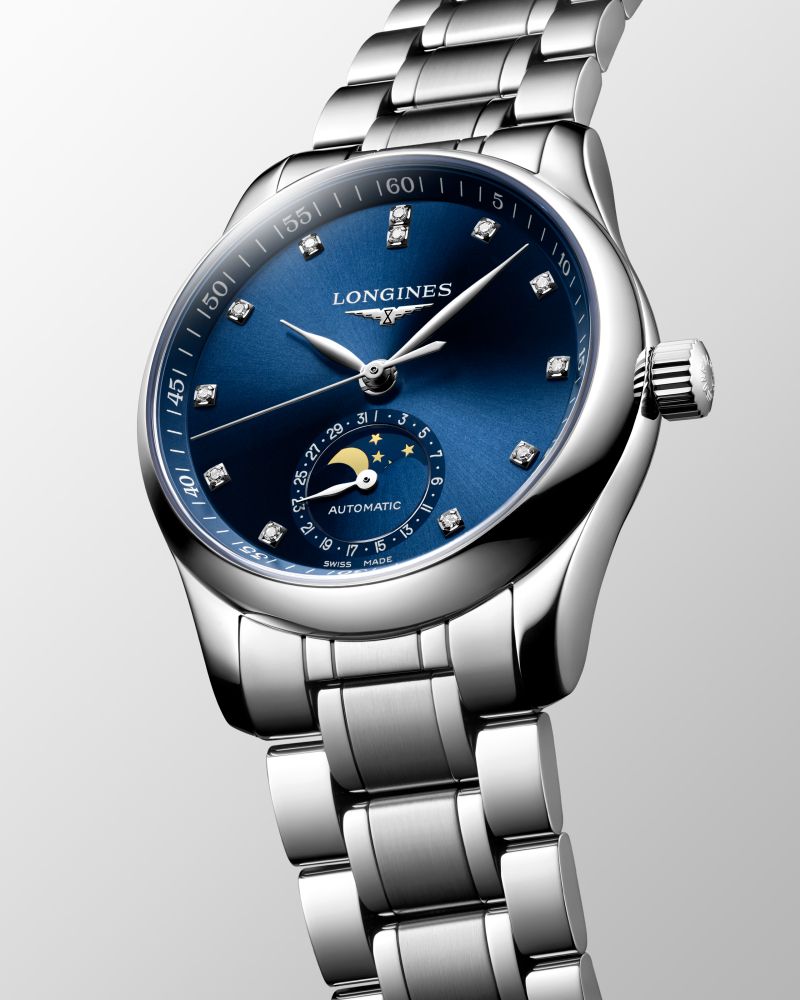 Bộ máy Longines Caliber L899 chuyển động cơ học tự động lên dây cót tốc độ 25'200 rung động mỗi giờ, dự trữ năng lượng lên đến 72 giờ. Mặt số đính 12 viên kim cương Top Wesselton VS-SI diamonds, tổng số 0.055 carats.