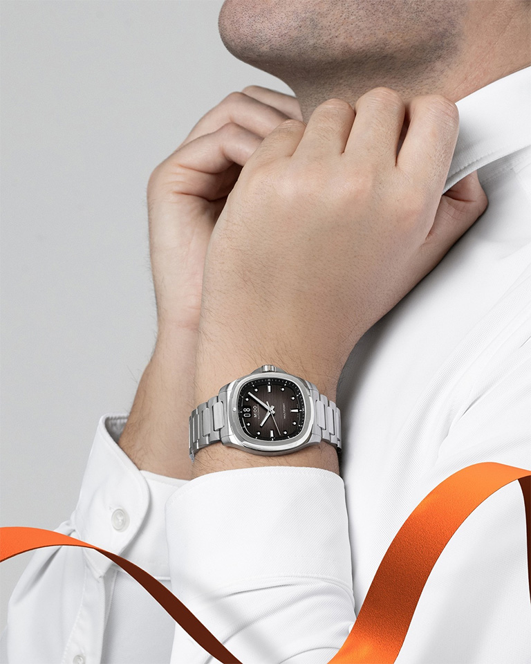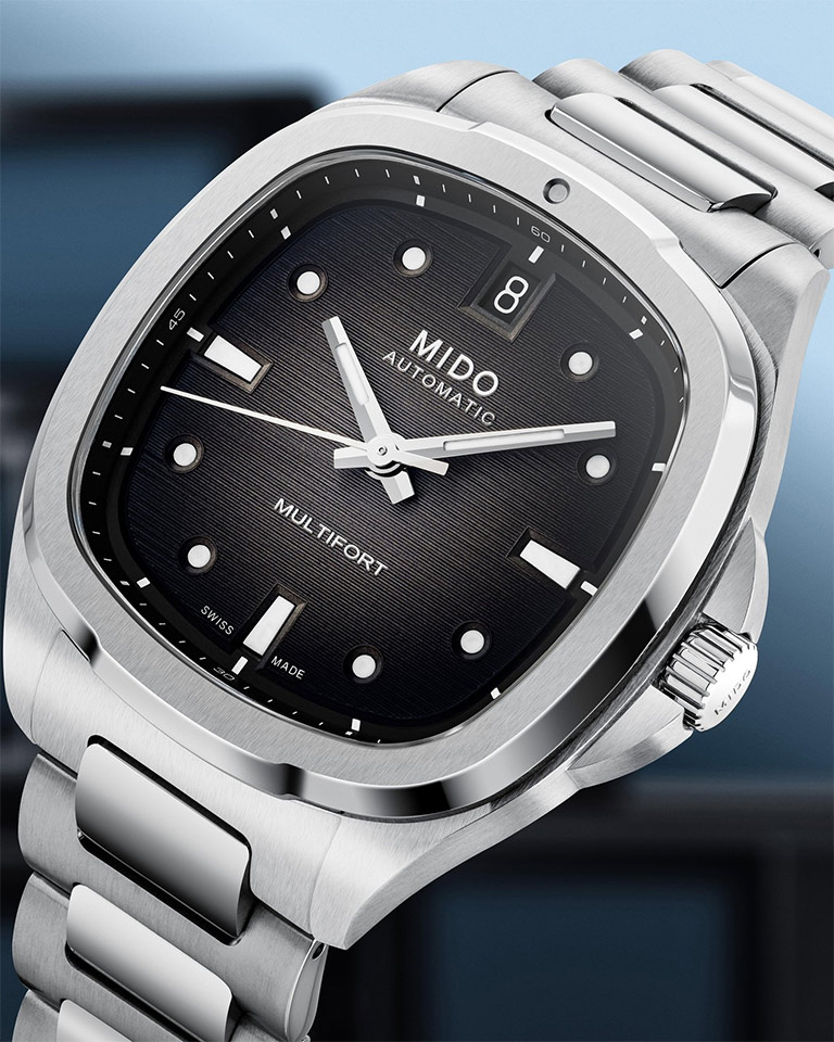 Đồng hồ MIDO MULTIFORT TV BIG DATE mang hình dáng chiếc tivi cổ ngày xưa đã được Mido ra mắt lần đầu vào năm 1973 và kể từ đó sản phẩm này trở thành biểu tượng của thời đại. Sau 50 năm, phiên bản độc đáo này lần nữa được tái xuất với hơi hướng đương đại. Mido đã nâng cao tính độc đáo của chế tác mới bằng cách thiết kế ô hiển thị ngày lớn – đó chính là ý nghĩa của chữ Big Date, kết hợp cùng mặt số được chăm chút một cách tỉ mỉ với hiệu ứng chuyển màu nhằm tạo thêm chiều sâu và độ tinh tế.