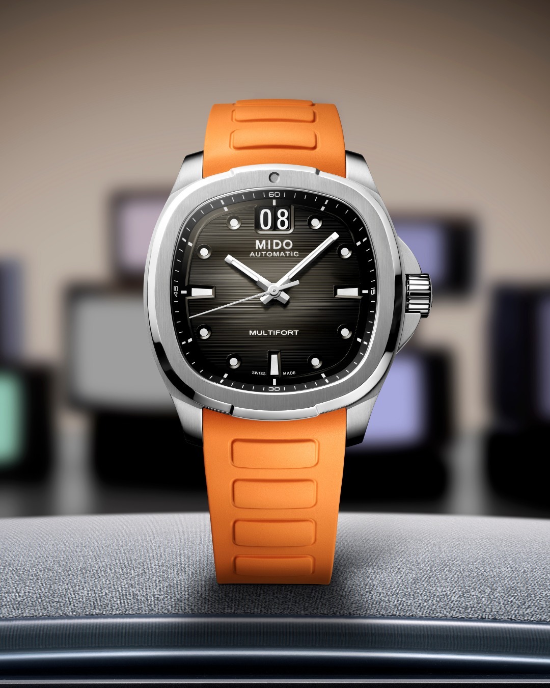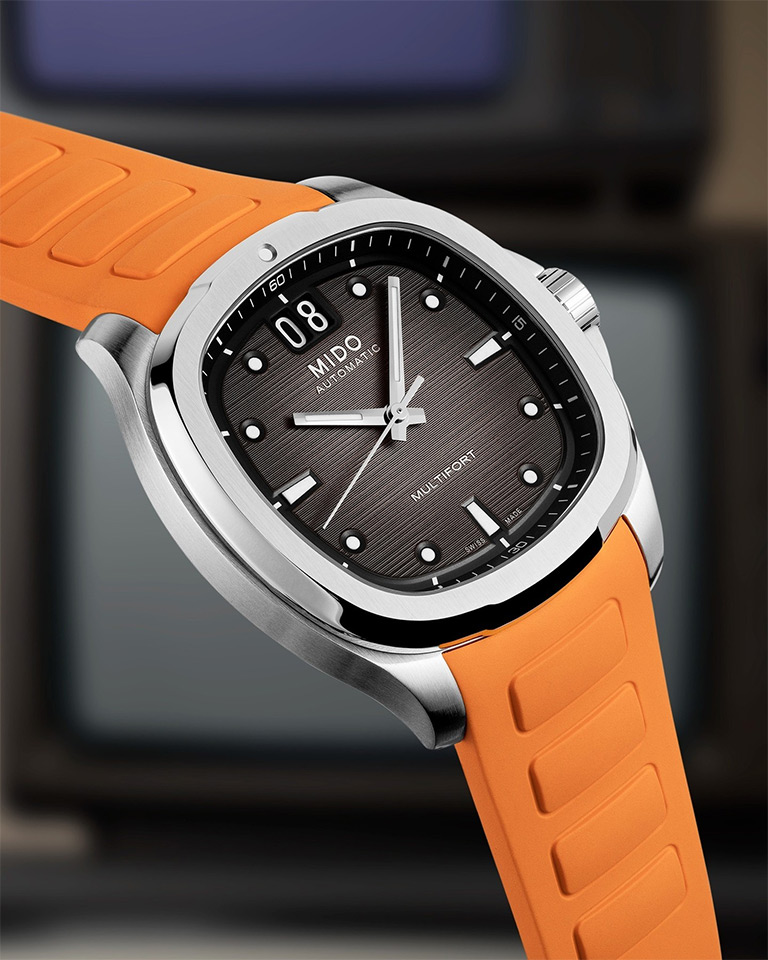 Đồng hồ MIDO MULTIFORT TV BIG DATE mang hình dáng chiếc tivi cổ ngày xưa đã được Mido ra mắt lần đầu vào năm 1973 và kể từ đó sản phẩm này trở thành biểu tượng của thời đại. Sau 50 năm, phiên bản độc đáo này lần nữa được tái xuất với hơi hướng đương đại. Mido đã nâng cao tính độc đáo của chế tác mới bằng cách thiết kế ô hiển thị ngày lớn – đó chính là ý nghĩa của chữ Big Date, kết hợp cùng mặt số được chăm chút một cách tỉ mỉ với hiệu ứng chuyển màu nhằm tạo thêm chiều sâu và độ tinh tế.
