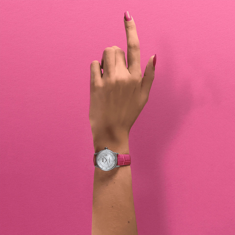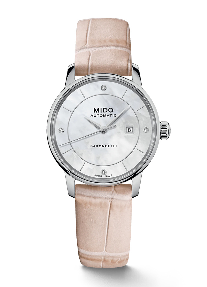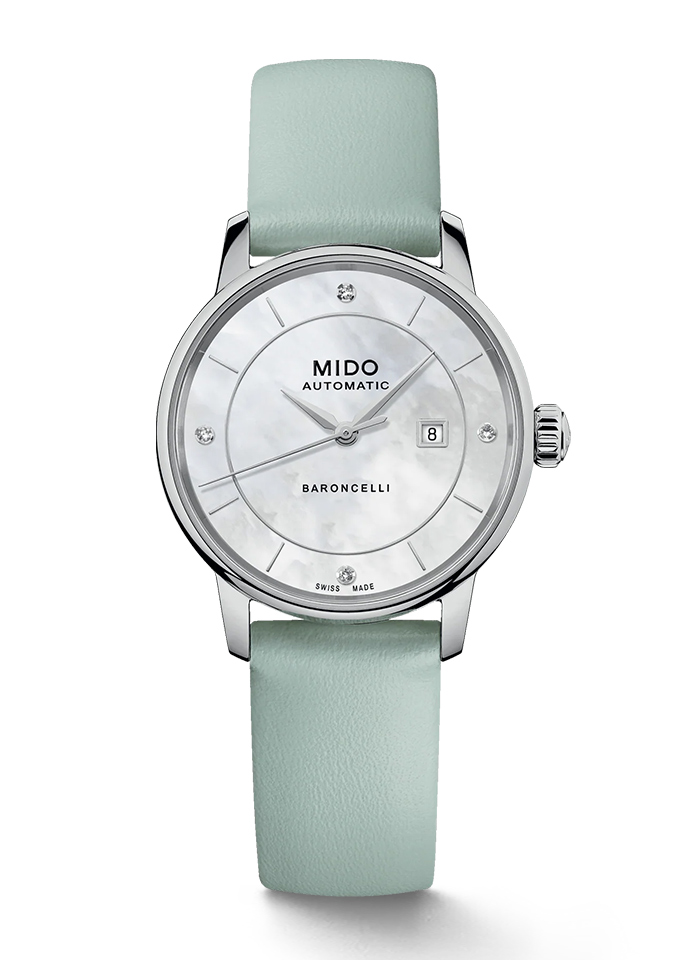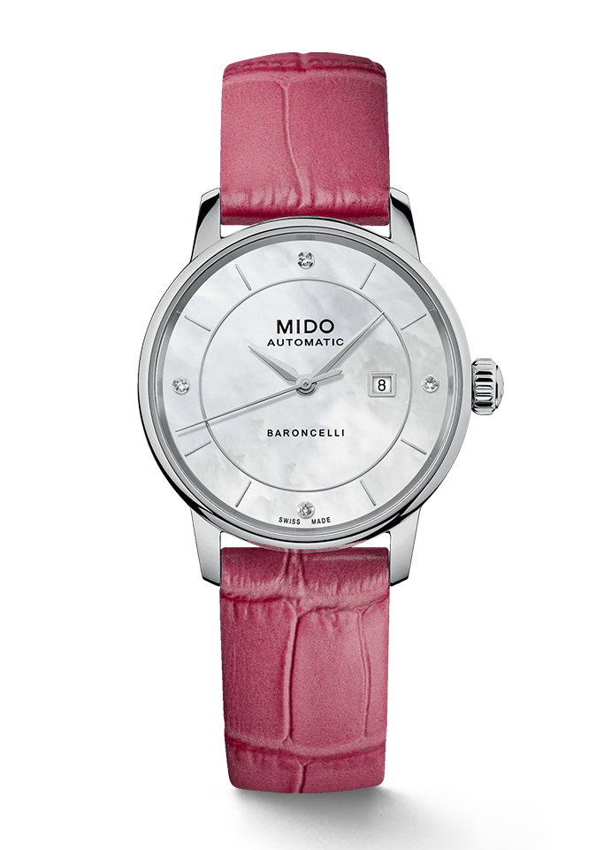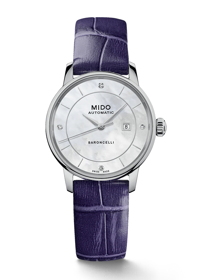 Phiên bản đồng hồ Mido Baroncelli Signature Lady Colours, mỗi đồng hồ kèm theo 05 bộ dây đeo chất liệu da cao cấp với 5 màu sắc khác nhau. Chốt dây được thiết kế tháo lắp dễ dàng, người đeo tự thay thế và đổi dây đeo theo sở thích khi cần.
