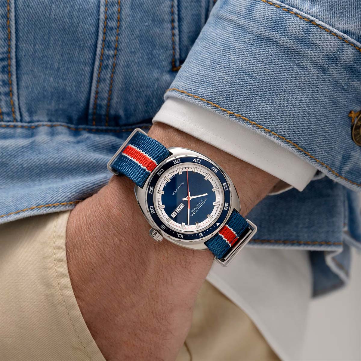 Đừng để cái tên Pan Europ đánh lừa bạn - chiếc đồng hồ này mang đậm tinh thần Mỹ thuần túy của Hamilton và sẵn sàng đồng hành cùng bạn trên những cung đường cổ điển của nước Mỹ. Bạn sẽ luôn đúng giờ một cách sành điệu và bộ máy tự động sẽ giúp bạn tiến về phía trước. Nếu bạn cần nghỉ ngơi, chức năng dự trữ năng lượng sẽ luôn sẵn sàng hỗ trợ bạn và màn hình hiển thị ngày tháng đảm bảo bạn không bao giờ quên thời gian. Với lựa chọn dây đeo NATO hoặc dây da, chiếc đồng hồ này mang đến sự điềm tĩnh, cổ điển và vô cùng linh hoạt.
