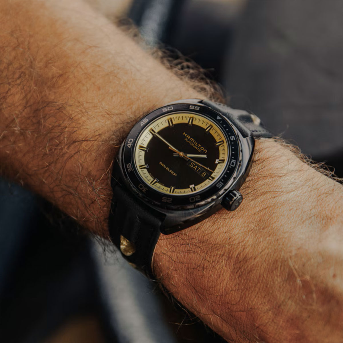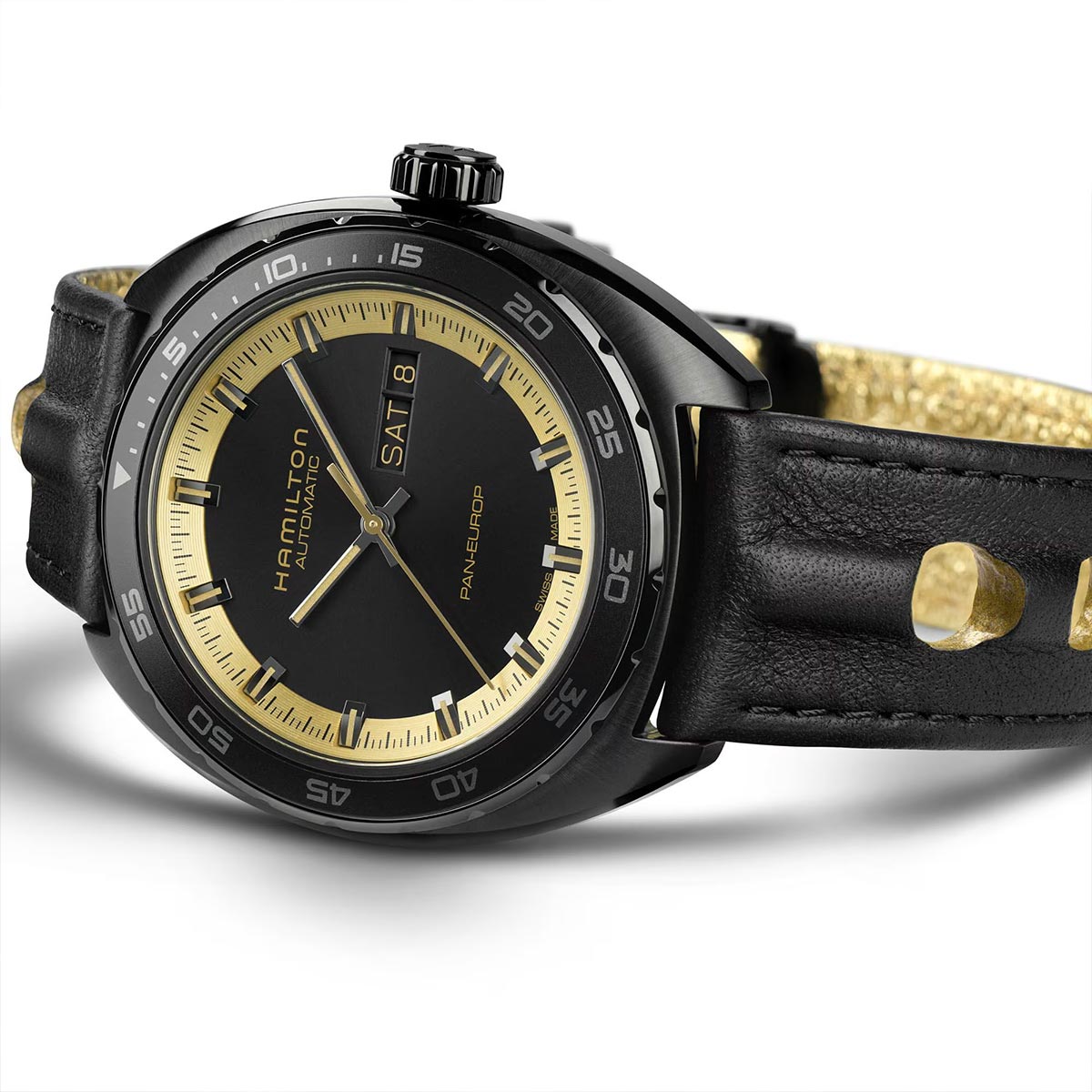 Tỏa sáng rực rỡ với thiết kế hai tông màu. Mang đậm nét bí ẩn và quyến rũ của Hollywood, bộ sưu tập đen và vàng của chúng tôi bao gồm năm chiếc đồng hồ lừng danh: Jazzmaster Auto 36mm, Jazzmaster Auto Chrono 42mm, Pan Europ, Ventura Chrono Quartz và Ventura S. Với sự tương phản giữa hào nhoáng và bụi bặm, bộ sưu tập này là định nghĩa hoàn hảo cho màn ảnh rộng. Pan Europ đi kèm hai dây đeo đen và vàng, một dây NATO và một dây da.