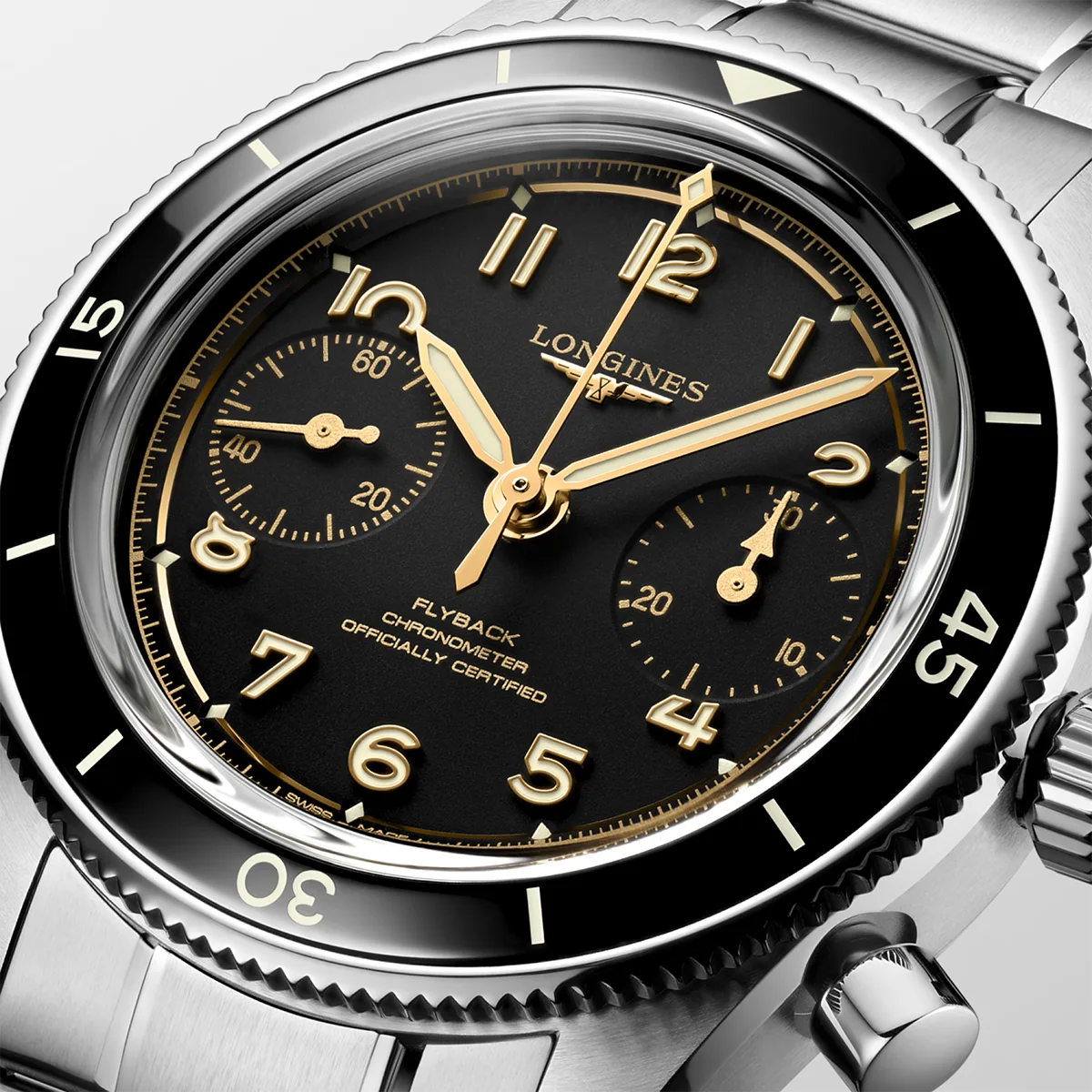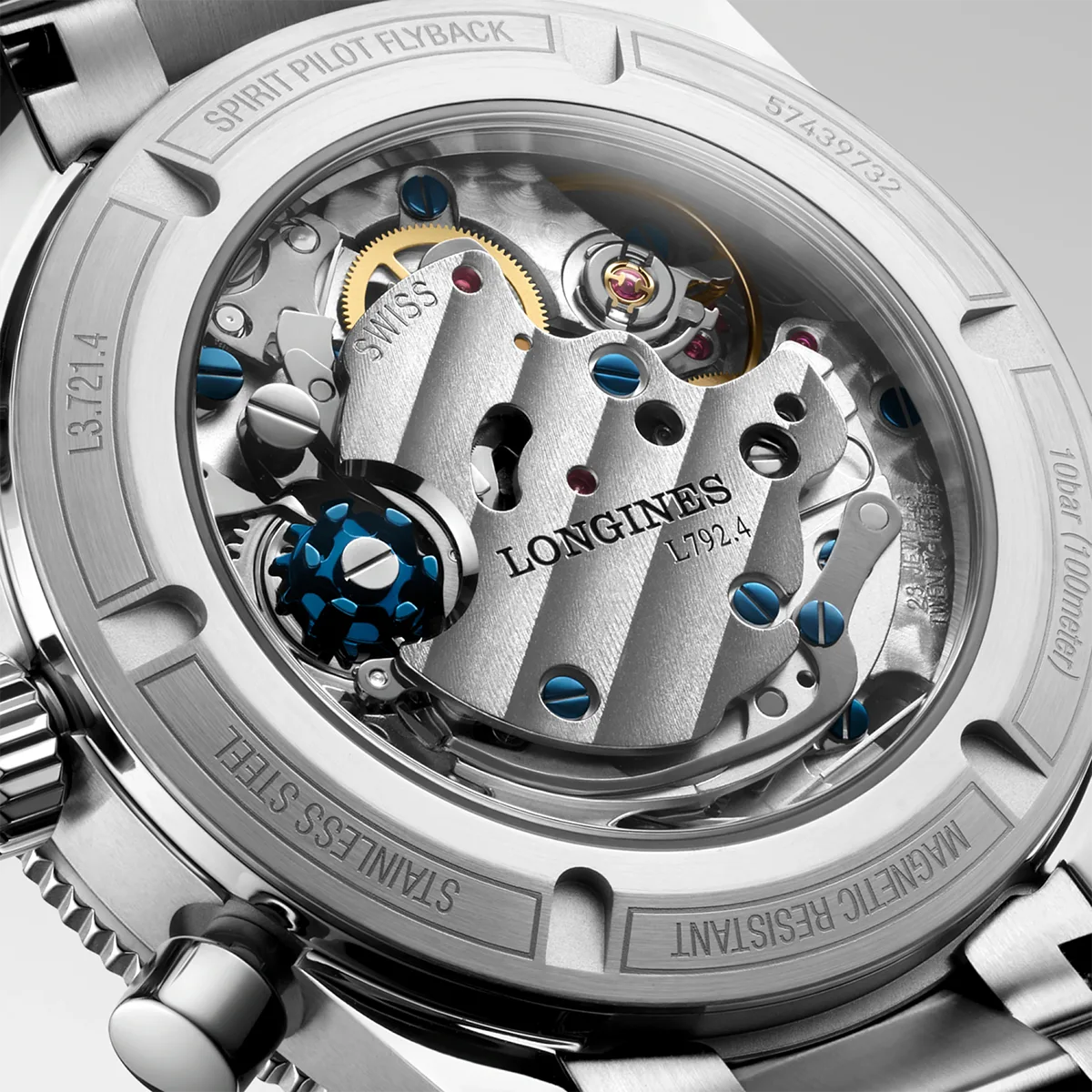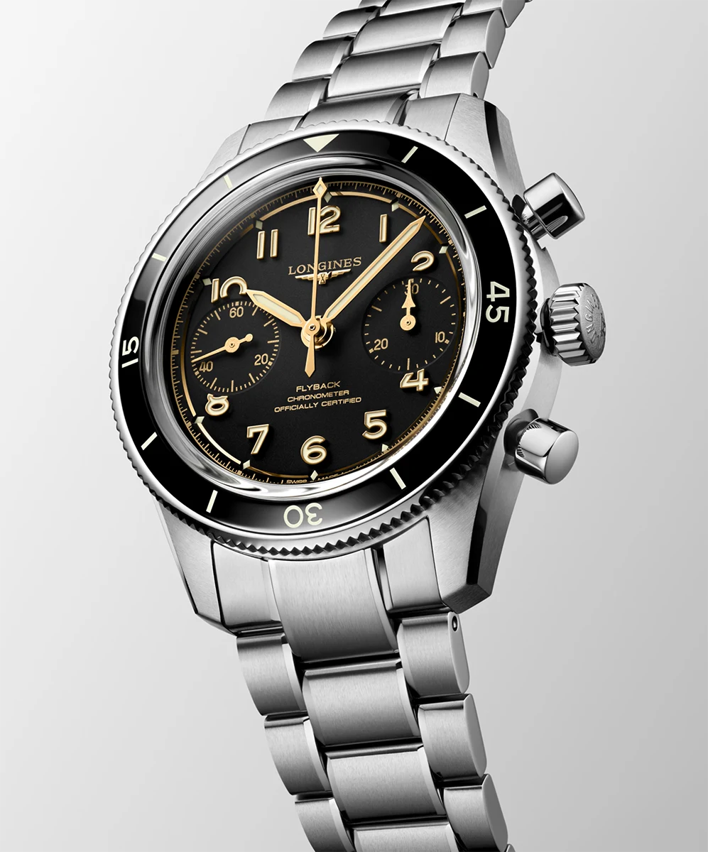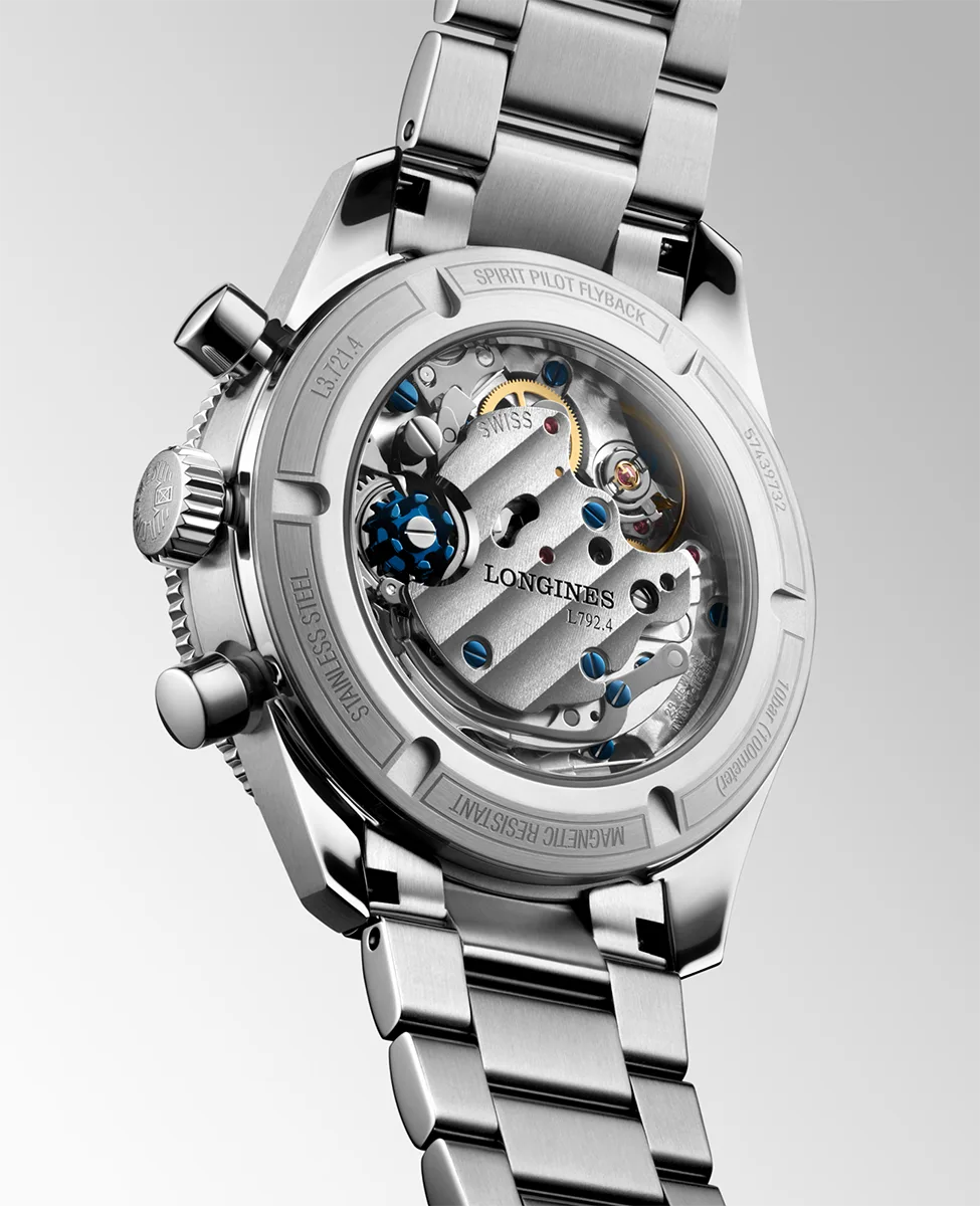 Được thiết kế như một công cụ đột phá dành cho phi công, chức năng flyback cho phép tính toán thời gian cho các giai đoạn bay liên tiếp, nâng cao đáng kể hiệu quả dẫn đường. Đồng hồ này được trang bị bộ máy cơ Longines Caliber L792 độc quyền lên với chức năng lên dây cót thủ công ở tần số 28.800 dao động một giờ, tích hợp tính năng kháng từ với khả năng dự trữ năng lượng bằng lò xo cân bằng silicon đơn tinh thể lên đến 68 giờ.