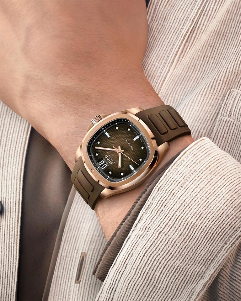 Đồng hồ MIDO MULTIFORT TV BIG DATE mang hình dáng chiếc tivi cổ ngày xưa đã được Mido ra mắt lần đầu vào năm 1973 và kể từ đó sản phẩm này trở thành biểu tượng của thời đại. Sau 50 năm, phiên bản độc đáo này lần nữa được tái xuất với hơi hướng đương đại. Mido đã nâng cao tính độc đáo của chế tác mới bằng cách thiết kế ô hiển thị ngày lớn – đó chính là ý nghĩa của chữ Big Date, kết hợp cùng mặt số được chăm chút một cách tỉ mỉ với hiệu ứng chuyển màu nhằm tạo thêm chiều sâu và độ tinh tế.
