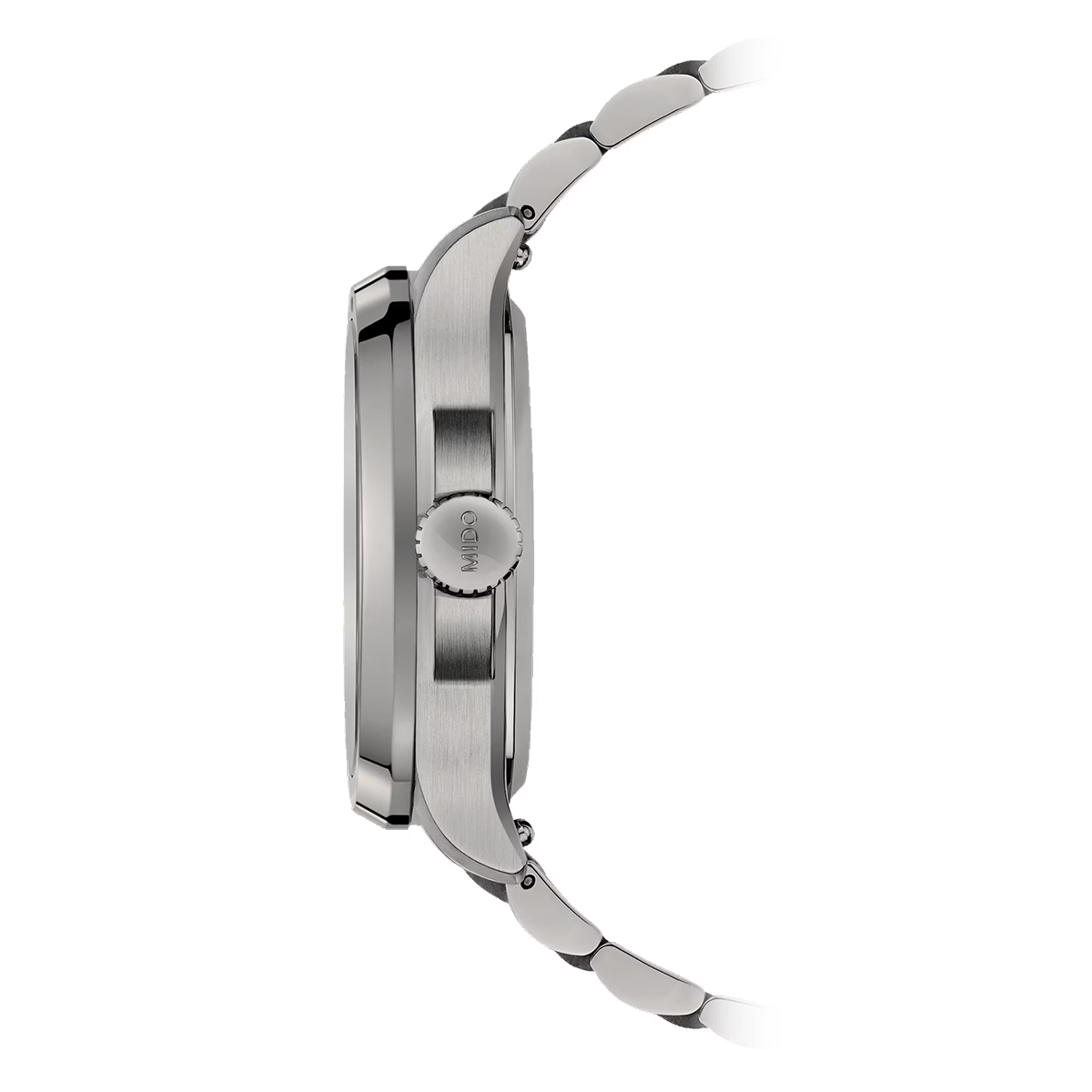 Đồng hồ MIDO MULTIFORT TV BIG DATE mang hình dáng chiếc tivi cổ ngày xưa đã được Mido ra mắt lần đầu vào năm 1973 và kể từ đó sản phẩm này trở thành biểu tượng của thời đại. Sau 50 năm, phiên bản độc đáo này lần nữa được tái xuất với hơi hướng đương đại. Mido đã nâng cao tính độc đáo của chế tác mới bằng cách thiết kế ô hiển thị ngày lớn – đó chính là ý nghĩa của chữ Big Date, kết hợp cùng mặt số được chăm chút một cách tỉ mỉ với hiệu ứng chuyển màu nhằm tạo thêm chiều sâu và độ tinh tế.