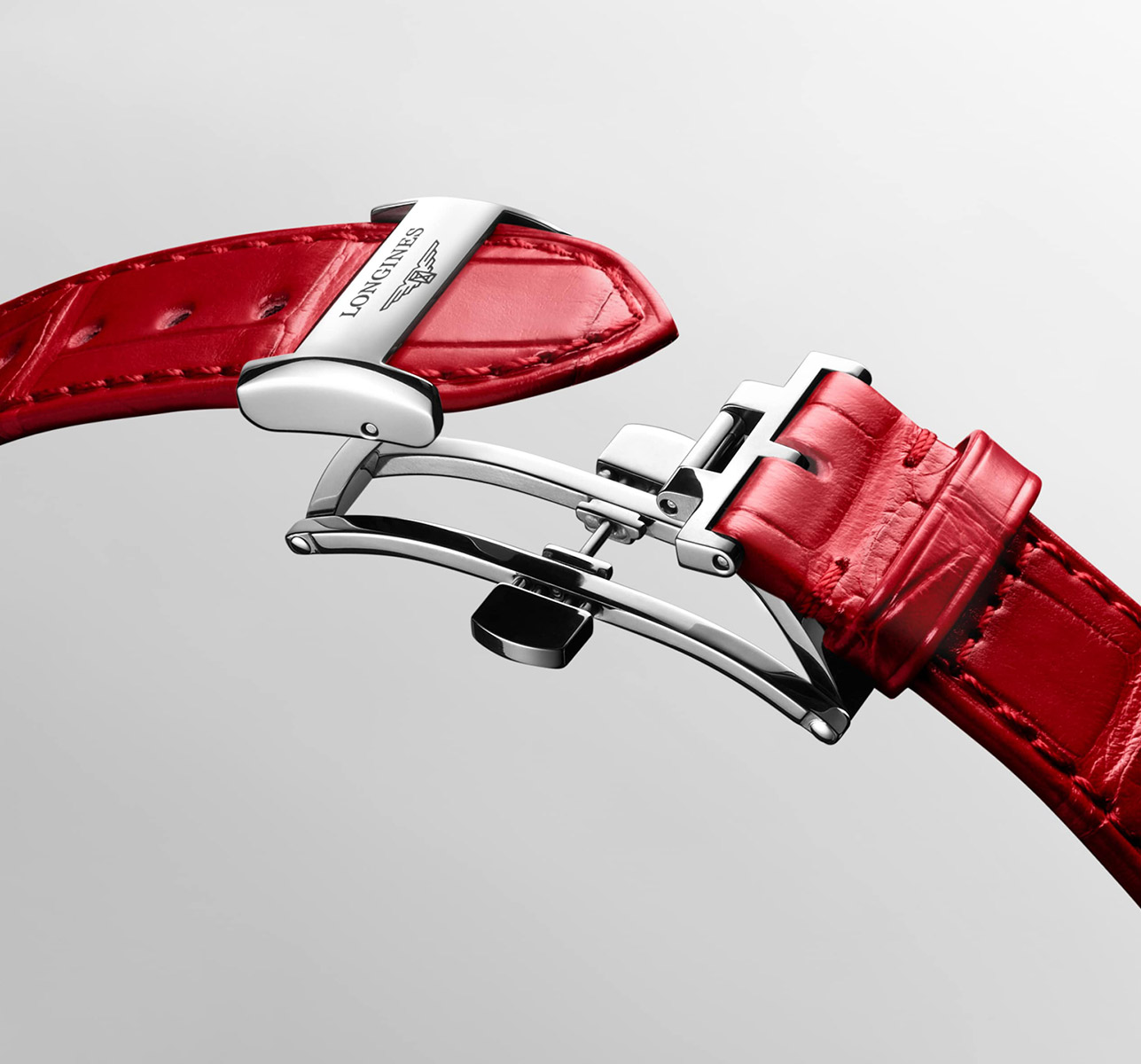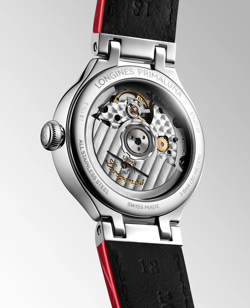 Bộ máy Longines Caliber L899 chuyển động cơ học tự động lên dây cót tốc độ 25'200 rung động mỗi giờ, với lò xo cân bằng silicon đơn tinh thể dự trữ năng lượng lên đến 72 giờ. Mặt số khảm xà cừ trắng & đính 14 viên kim cương Top Wesselton VS-SI diamonds, tổng số 0.060 carats.