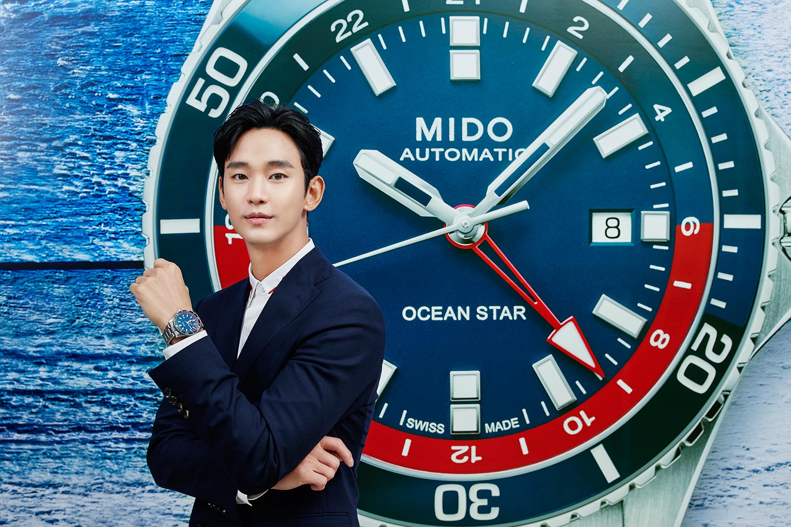 Rất vinh dự và phấn khích khi làm đại sứ thương hiệu cho Mido từ hơn một năm nay, Kim Soo Hyun chia sẻ rằng phiên bản “diving watch đặc biệt” này mang đậm dấu ấn của đại dương với mặt số xanh biển được làm nổi bật với dải màu đỏ trên viền bích, tương phản với vòng xoay ceramic xanh dương. Tạo tác được lắp bộ máy chính xác Calibre 80 với chức năng hữu dụng GMT rất được ưa chuộng hiện nay. Ngoài dây thép không rỉ, Mido còn tặng kèm một dây kiểu Nato với các sọc màu đỏ xanh trắng khá bắt mắt và dây này có thể thay nhanh để đổi phong cách cho phù hợp với trang phục công sở hay những dịp dã ngoại cuối tuần.