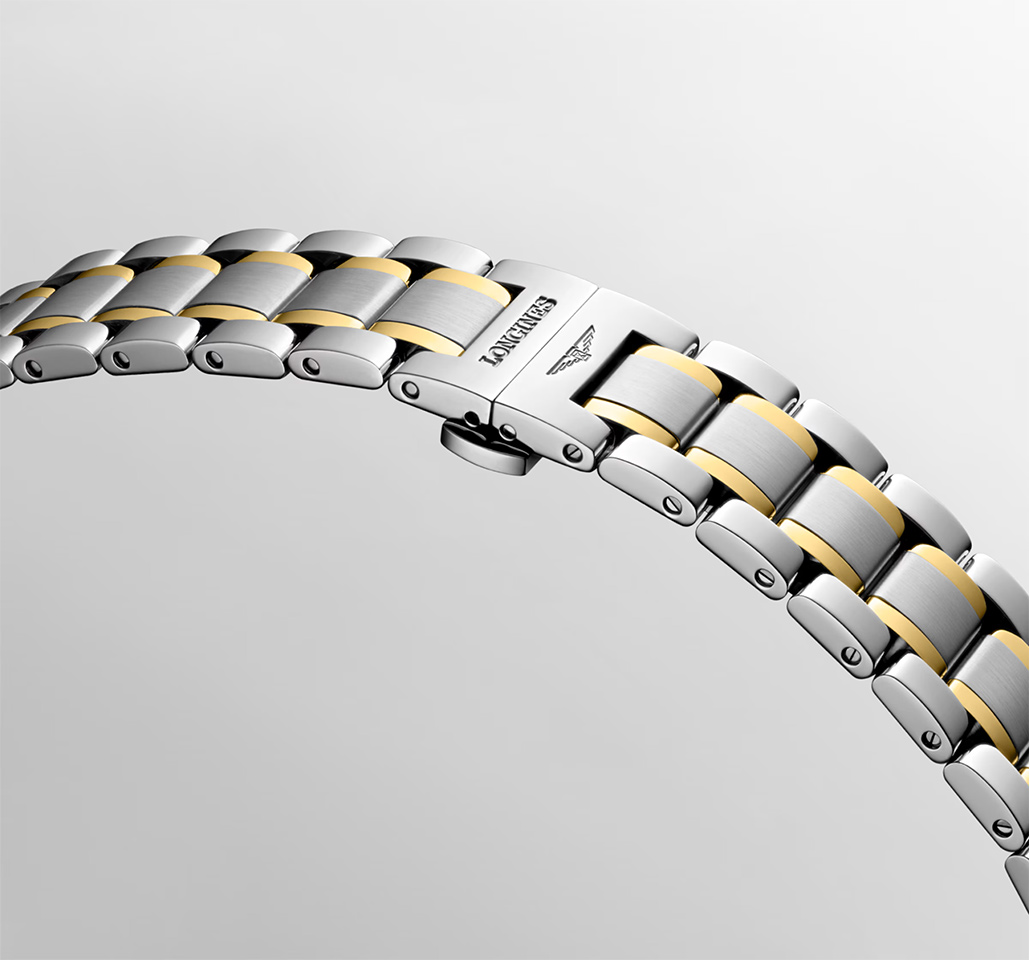Bộ máy Longines Caliber L899 chuyển động cơ học tự động lên dây cót tốc độ 25'200 rung động mỗi giờ, dự trữ năng lượng lên đến 72 giờ. Mặt số khảm xà cừ trắng & đính 12 viên kim cương Top Wesselton VS-SI diamonds, tổng số 0.055 carats.