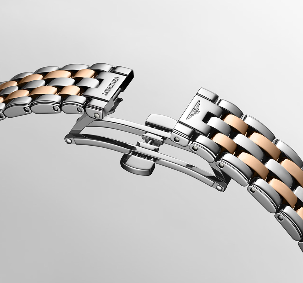 Bộ máy Longines Caliber L592 chuyển động cơ học tự động lên dây cót tốc độ 28'800 rung động mỗi giờ, với lò xo cân bằng silicon đơn tinh thể dự trữ năng lượng lên đến 45 giờ.