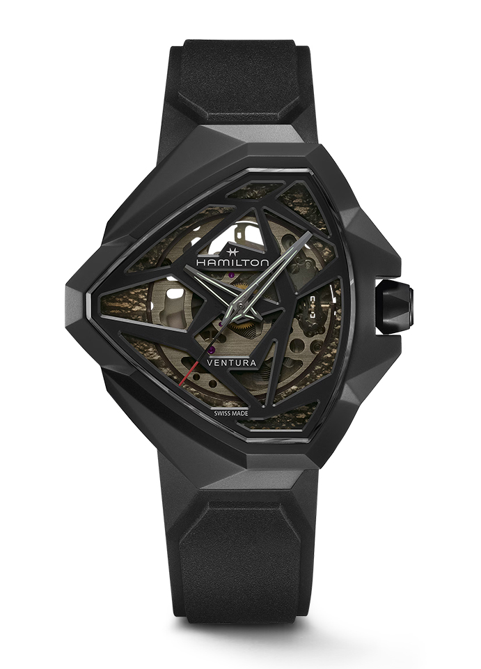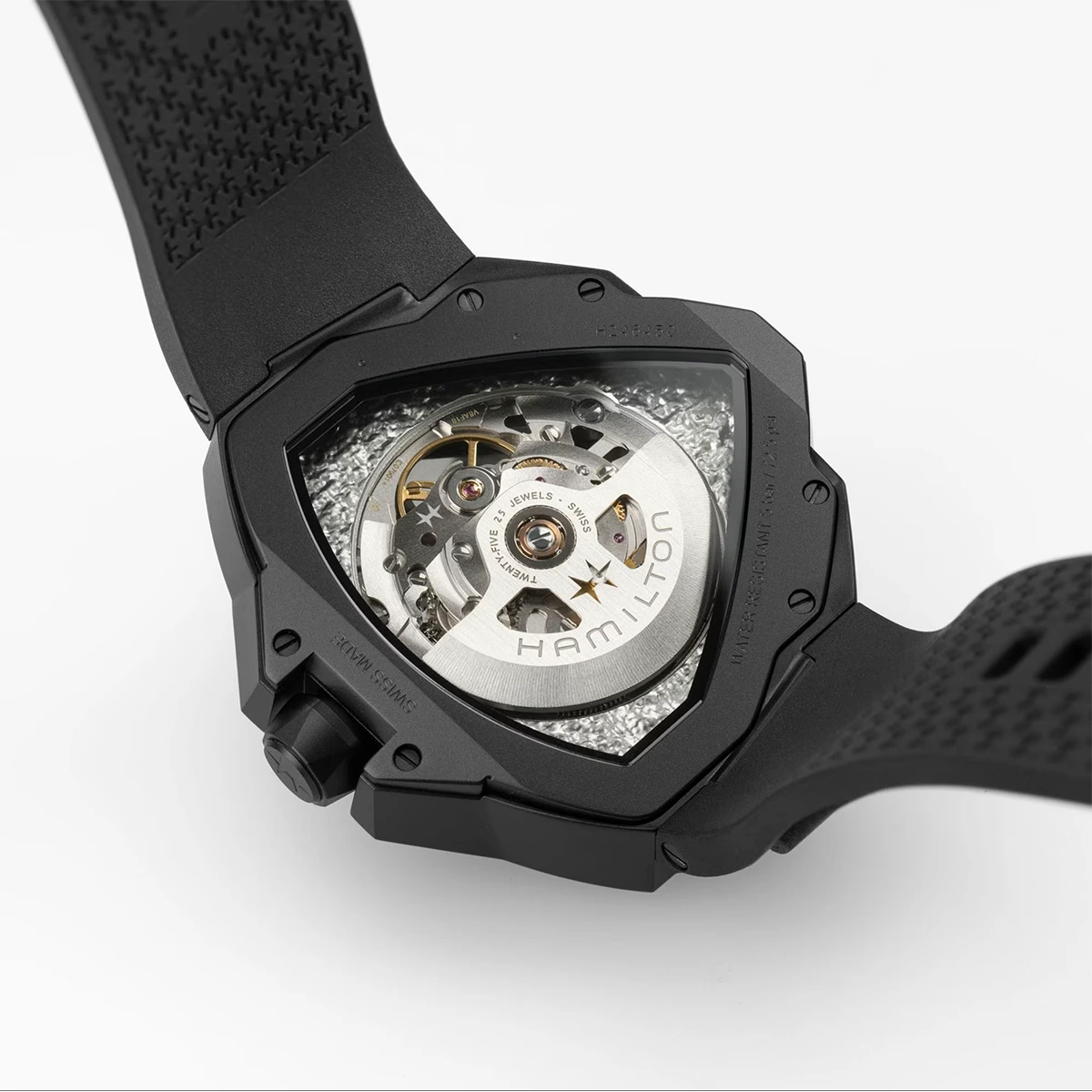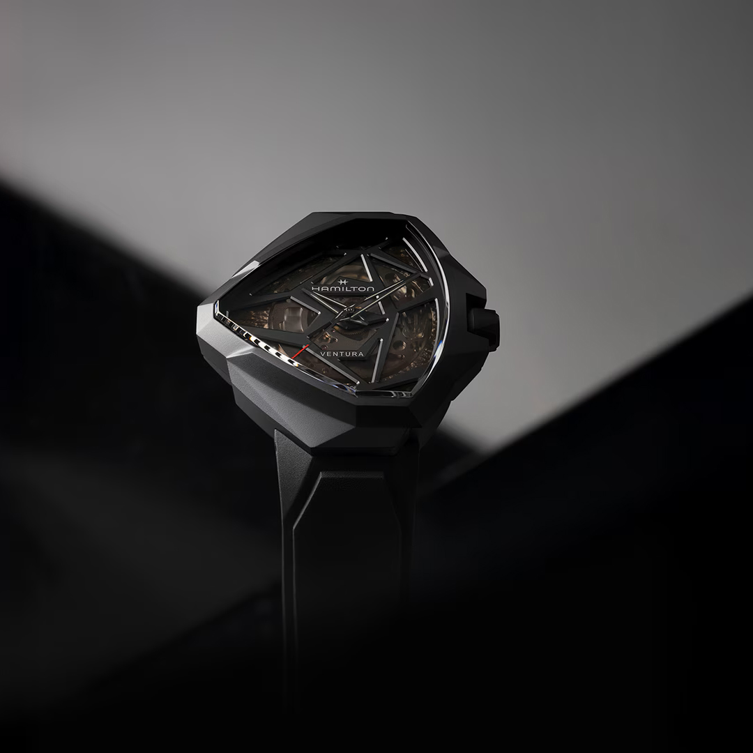 Vượt qua mọi quy ước, Ventura Edge Skeleton thực hiện một bước nhảy vọt táo bạo vào tương lai của ngành chế tác đồng hồ. Thoát khỏi cấu trúc vỏ tam giác đặc trưng của Ventura, chiếc đồng hồ này mang đến một thiết kế kiến ​​trúc mới đầy táo bạo. Tối màu, bí ẩn và được thiết kế đột phá, chiếc đồng hồ này chơi đùa với bóng tối và ánh sáng, mang đến chiều sâu gần như siêu thực cho hình dáng của nó. Được bao bọc bởi lớp vỏ đen huyền bí, trái tim của nó là bộ máy H-10-S, được hé lộ dần dần bởi mặt số lộ cơ hiệu ứng chuyển màu.