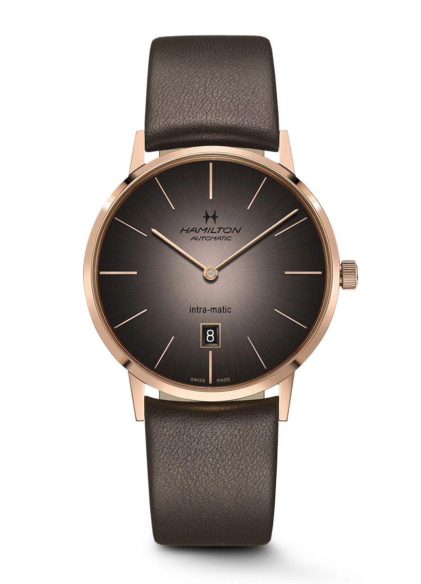 Những điểm nhấn ấm áp và các chi tiết màu khói của Hamilton Intra-Matic mới tạo nên một chiếc American Classic nam tính, cổ điển. Intra-Matic kế thừa lịch sử phong phú của Hamilton, kết hợp những nét hiện đại với chi tiết cổ điển đích thực từ bộ sưu tập American Classic của Hamilton.