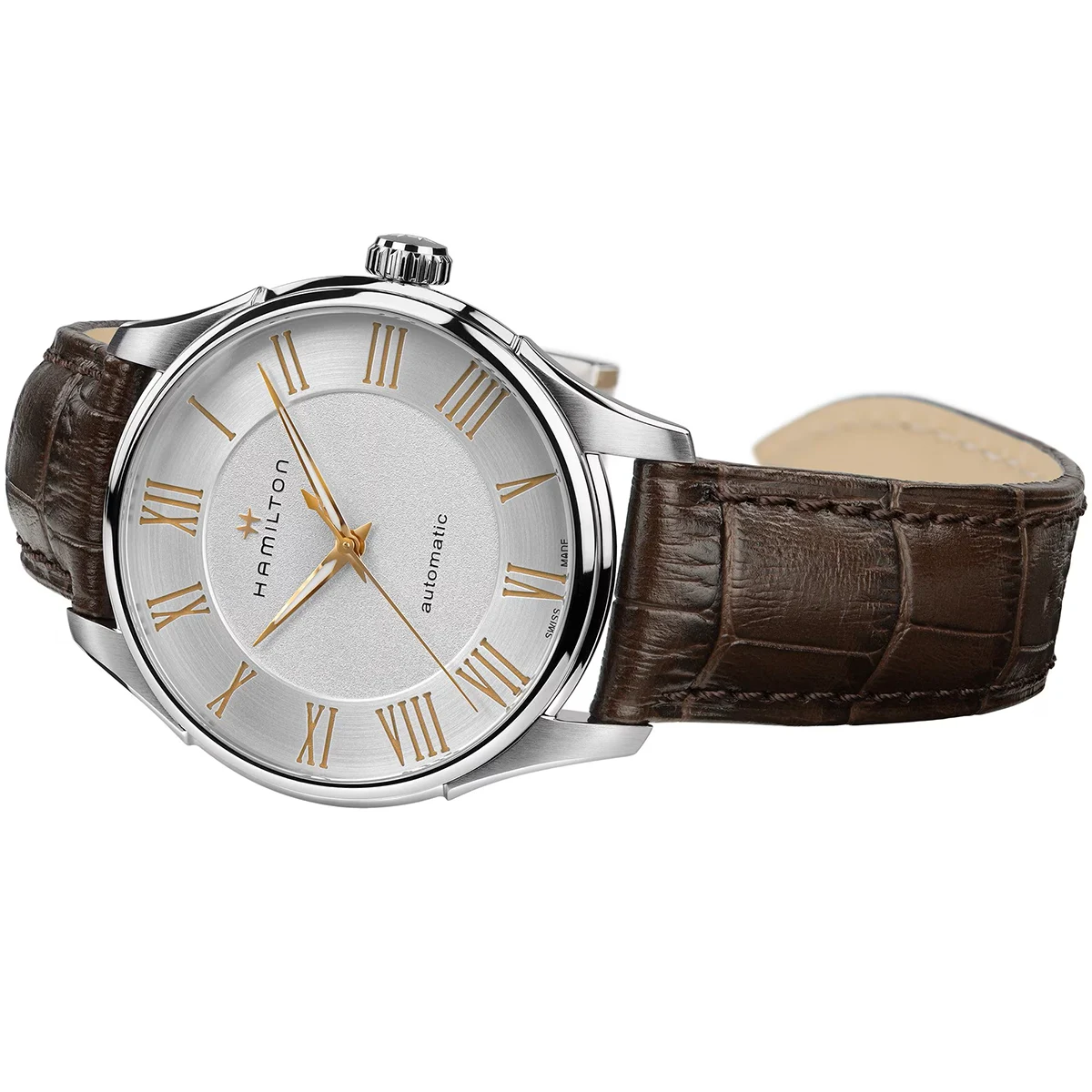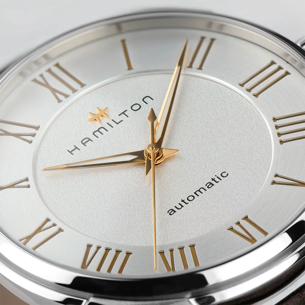 Sự giao thoa giữa truyền thống và đổi mới trong chiếc Jazzmaster Automatic 40mm. Chữ số La Mã trên mặt số tạo nên phong cách riêng biệt, cùng bộ máy H-10 với lò xo cân bằng NivachronTM kháng từ đảm bảo độ chính xác tuyệt đối. Mọi thứ đều có thể với chiếc đồng hồ chất lượng cao này, với nhiều lựa chọn kết hợp mặt số và dây đeo.