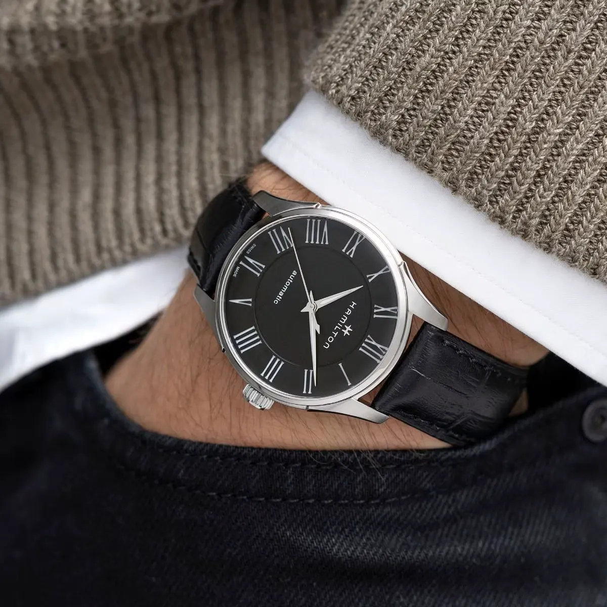 Sự giao thoa giữa truyền thống và đổi mới trong chiếc Jazzmaster Automatic 40mm. Chữ số La Mã trên mặt số tạo nên phong cách riêng biệt, cùng bộ máy H-10 với lò xo cân bằng NivachronTM kháng từ đảm bảo độ chính xác tuyệt đối. Mọi thứ đều có thể với chiếc đồng hồ chất lượng cao này, với nhiều lựa chọn kết hợp mặt số và dây đeo.