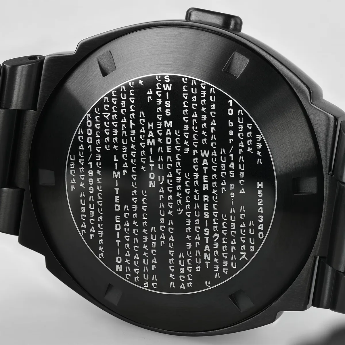 Hãy gia nhập hàng ngũ Neo, Trinity, Morpheus và nhiều hơn nữa với phong cách nổi bật trong bất kỳ thực tế nào cùng Hamilton PSR MTX. Được sản xuất giới hạn 1.999 chiếc để kỷ niệm buổi ra mắt bộ phim gốc, chiếc đồng hồ đen tuyền bóng bẩy này chào đón sự trở lại của Ma Trận với mặt số LCD màu xanh lá cây và họa tiết mưa kỹ thuật số đặc trưng của bộ phim được khắc trên mặt sau vỏ và trên bao bì đặc biệt của đồng hồ.