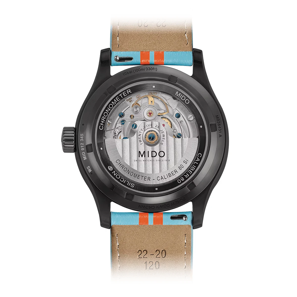 Kèm theo 02 bộ dây đeo được thiết kế với cơ chế tháo dây nhanh, người sử dụng có thể dễ dàng thay đổi dây đeo để phù hợp với trang phục và sở thích khi cần. Được trang bị bộ máy tự động độc quyền Calibre 80 SI, tăng cường với dây tóc cân bằng silicon, mang lại độ chính xác và độ bền vượt trội. Bộ máy Automatic của đồng hồ được chứng nhận đạt tiêu chuẩn Chronometer "Đồng hồ chạy chính xác" bởi hiệp hội COSC (Contrôle official Suisse des Chronomètres) cơ quan kiểm định chất lượng đồng hồ Thụy Sĩ.