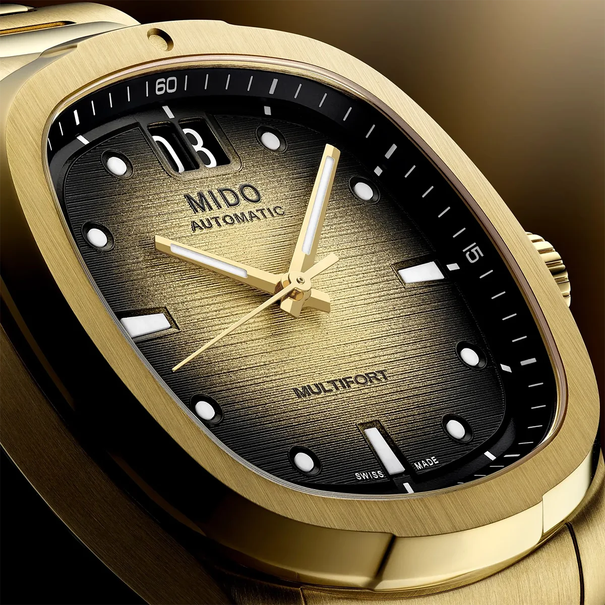 Đồng hồ MIDO MULTIFORT TV BIG DATE mang hình dáng chiếc tivi cổ ngày xưa đã được Mido ra mắt lần đầu vào năm 1973 và kể từ đó sản phẩm này trở thành biểu tượng của thời đại. Sau 50 năm, phiên bản độc đáo này lần nữa được tái xuất với hơi hướng đương đại. Mido đã nâng cao tính độc đáo của chế tác mới bằng cách thiết kế ô hiển thị ngày lớn – đó chính là ý nghĩa của chữ Big Date, kết hợp cùng mặt số được chăm chút một cách tỉ mỉ với hiệu ứng chuyển màu nhằm tạo thêm chiều sâu và độ tinh tế.