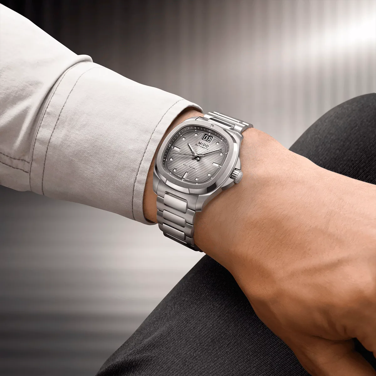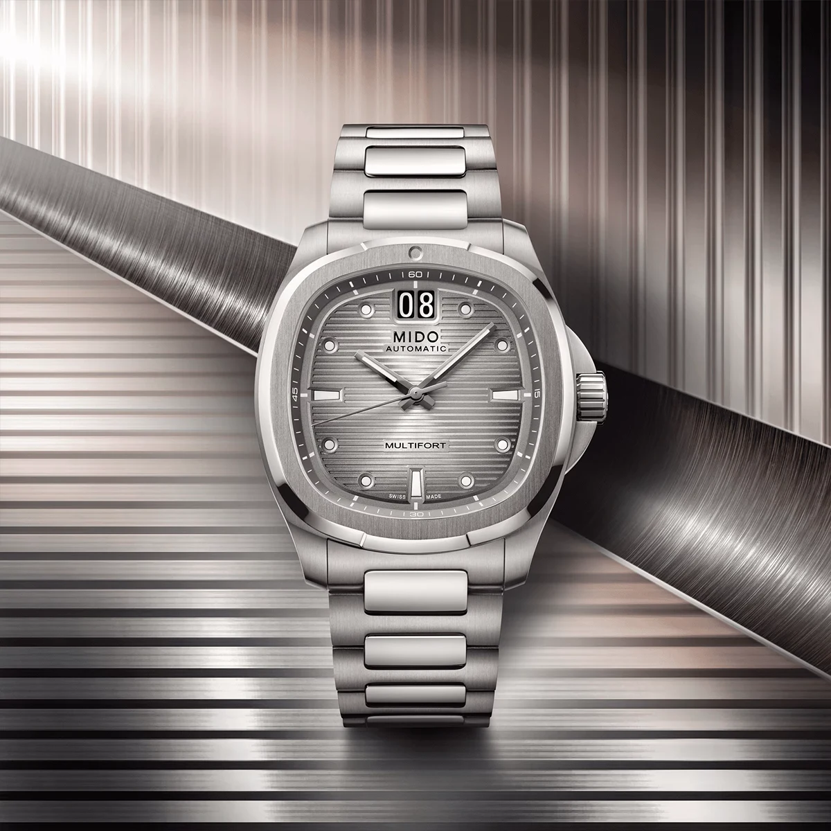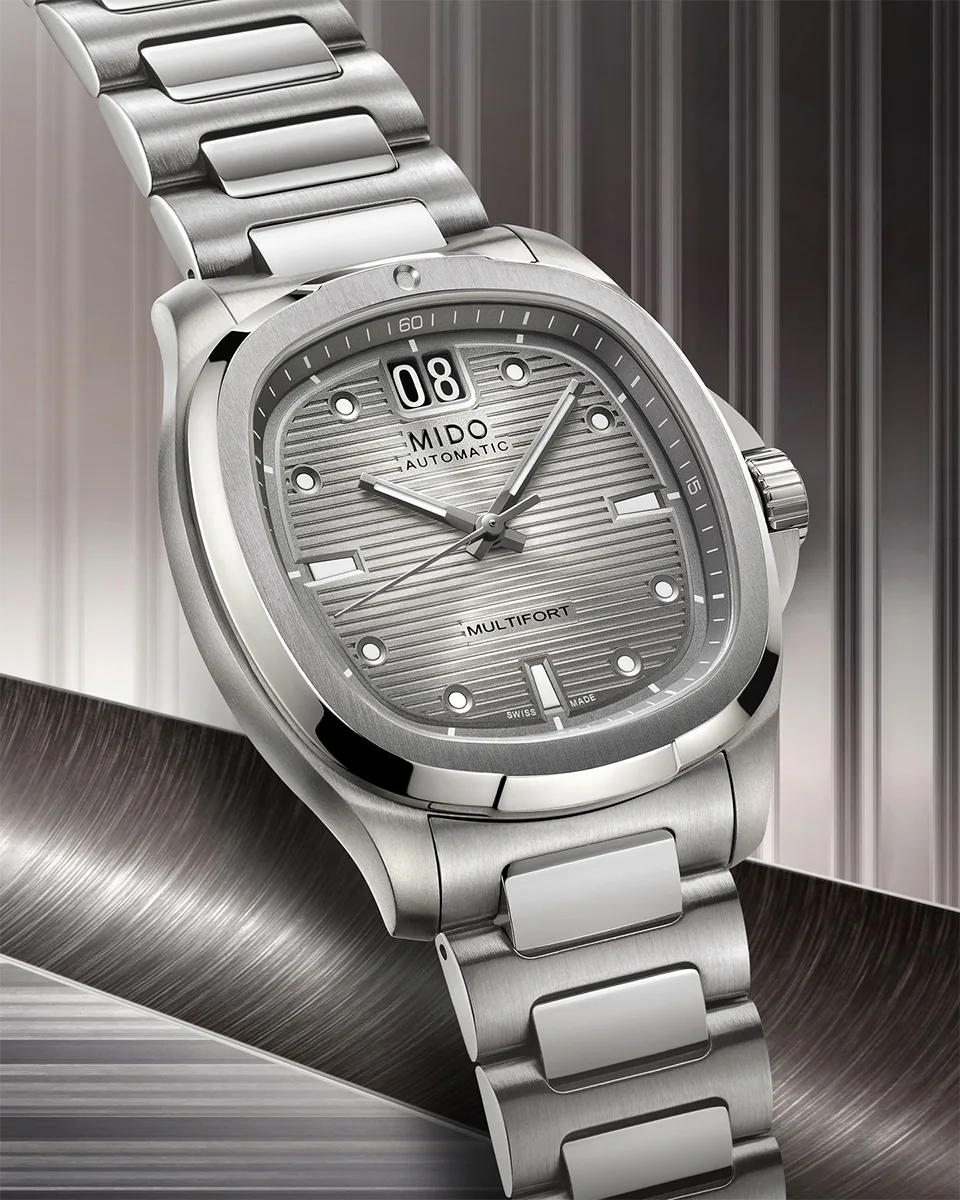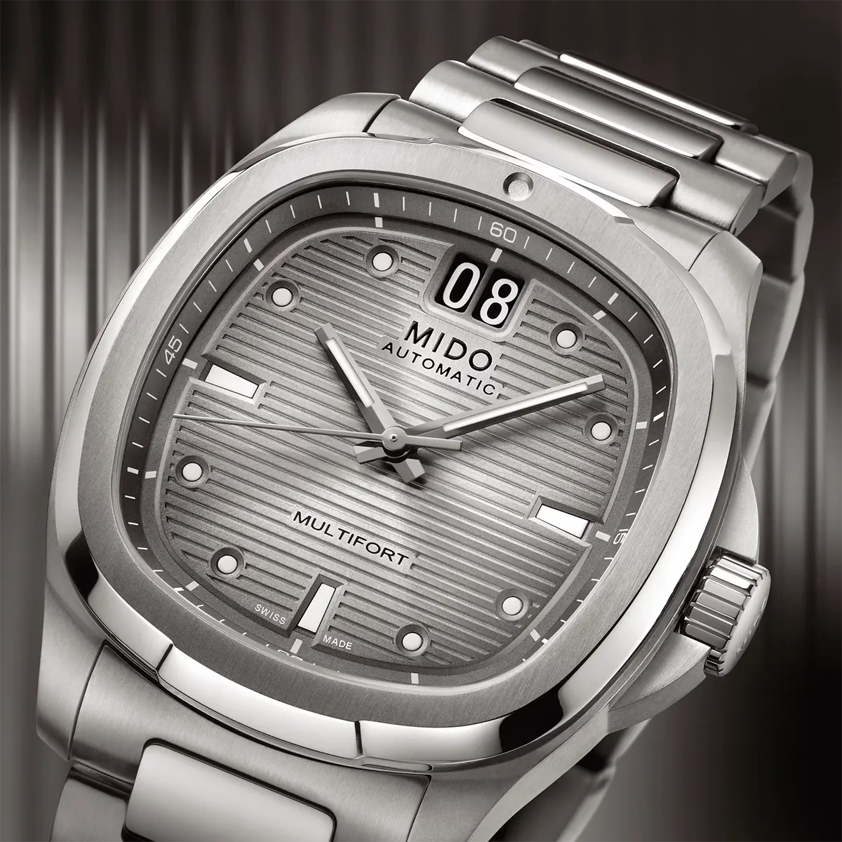 Đồng hồ MIDO MULTIFORT TV BIG DATE mang hình dáng chiếc tivi cổ ngày xưa đã được Mido ra mắt lần đầu vào năm 1973 và kể từ đó sản phẩm này trở thành biểu tượng của thời đại. Sau 50 năm, phiên bản độc đáo này lần nữa được tái xuất với hơi hướng đương đại. Mido đã nâng cao tính độc đáo của chế tác mới bằng cách thiết kế ô hiển thị ngày lớn – đó chính là ý nghĩa của chữ Big Date, kết hợp cùng mặt số được chăm chút một cách tỉ mỉ với hiệu ứng chuyển màu nhằm tạo thêm chiều sâu và độ tinh tế.