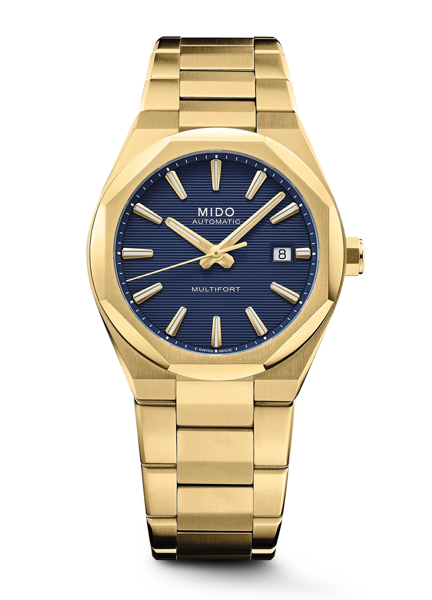 Với những đường nét tinh tế, vỏ đồng hồ 40 mm cân đối và vành bezel hình bát giác độc đáo, Multifort 8 One Crown thể hiện thiết kế táo bạo và hiện đại. Mặt số được cấu trúc bằng các rãnh ngang, tạo nên nhịp điệu và chiều sâu, trong khi chất phát quang Super-LumiNova® đảm bảo khả năng đọc giờ hoàn hảo. Mặt kính sapphire chống phản chiếu hai mặt bảo vệ mặt số, được tăng cường bởi vỏ thép hoàn thiện mờ với các cạnh được đánh bóng. Được trang bị bộ máy Caliber 80 – một bộ máy tự động Thụy Sĩ với khả năng dự trữ năng lượng kéo dài, có thể nhìn thấy qua mặt sau trong suốt – chiếc đồng hồ này phản ánh tầm nhìn TECHNOMETRY của MIDO: sự kết hợp hài hòa giữa công nghệ và hình học. Mạnh mẽ, chính xác và phong cách, Multifort 8 One Crown được tạo ra dành cho những người đòi hỏi sự xuất sắc với cá tính riêng.