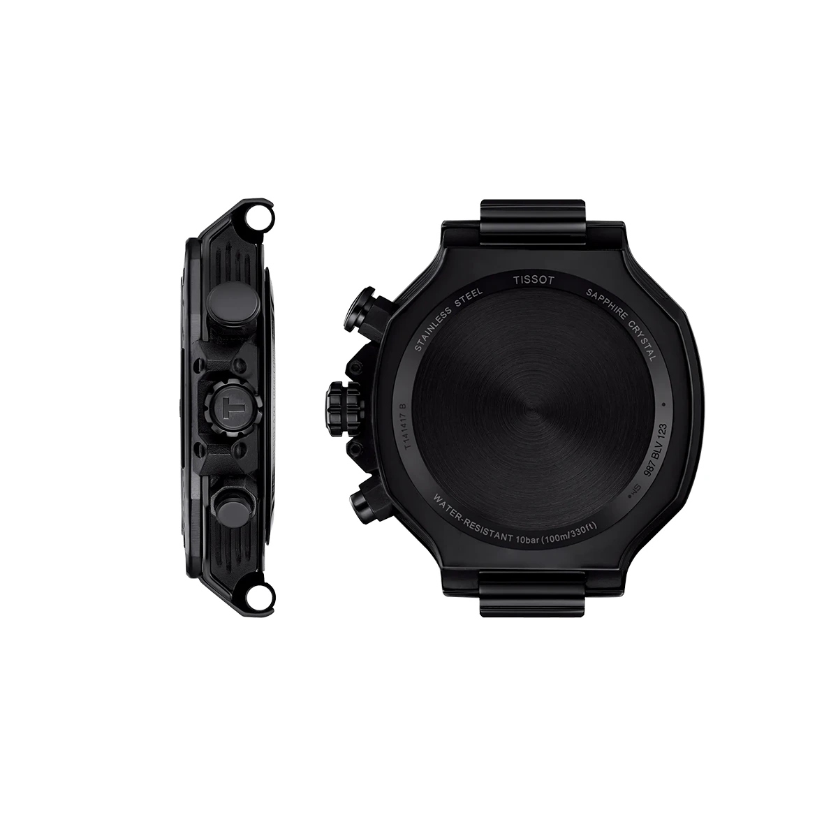 Với thiết kế mới, Tissot T-Race Chronograph có mặt đồng hồ thanh lịch hơn, mà không phủ nhận nguồn gốc thể thao của nó. Tissot đã lấy cảm hứng từ mối quan hệ hợp tác với đua xe mô tô để tạo ra một chiếc đồng hồ phản ánh sự năng động của xe mô tô và cảm xúc của môn thể thao này. Chiếc đồng hồ này có khả năng chống nước lên đến áp suất 10 bar (100 m), được trang bị bộ máy bấm giờ thạch anh và kim giờ và kim phút được phủ SuperluminiNova. Phiên bản Tissot T-Race Chronograph này có vỏ bằng thép không gỉ 316L. Mặt kính sapphire chống trầy xước, chống phản chiếu đảm bảo độ bền được tăng cường.