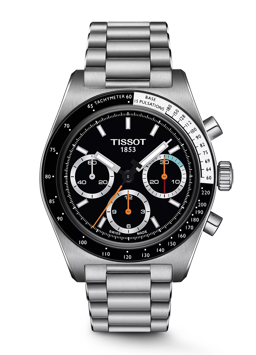 Tissot PR516 Chronograph Mechanical: Được chế tác bằng vỏ thép không gỉ 41mm và tinh thể sapphire kiểu hộp kính, chiếc đồng hồ này là minh chứng cho sự tinh xảo trong nghề chế tác. Trái tim của nó là bộ máy lên dây cót thủ công của Thụy Sĩ, có thể nhìn thấy qua nắp lưng mở, phô bày bộ máy phức tạp. Mặt số, có các vạch chỉ giờ và kim được phủ Super-LumiNova®️, đảm bảo khả năng đọc trong mọi hoàn cảnh. Máy đo tốc độ trên vành bezel tăng thêm nét chức năng. Thiết kế đa năng của nó được bổ sung bởi dây đeo bằng thép không gỉ hình vòm với hệ thống có thể thay đổi nhanh chóng, hoàn hảo để chuyển đổi từ các cuộc họp kinh doanh sang các buổi đi chơi bình thường. PR516 Chronograph Mechanical là một tác phẩm tinh tế dành cho những người sành đồng hồ đánh giá cao thiết kế vượt thời gian và độ chính xác của cơ học.