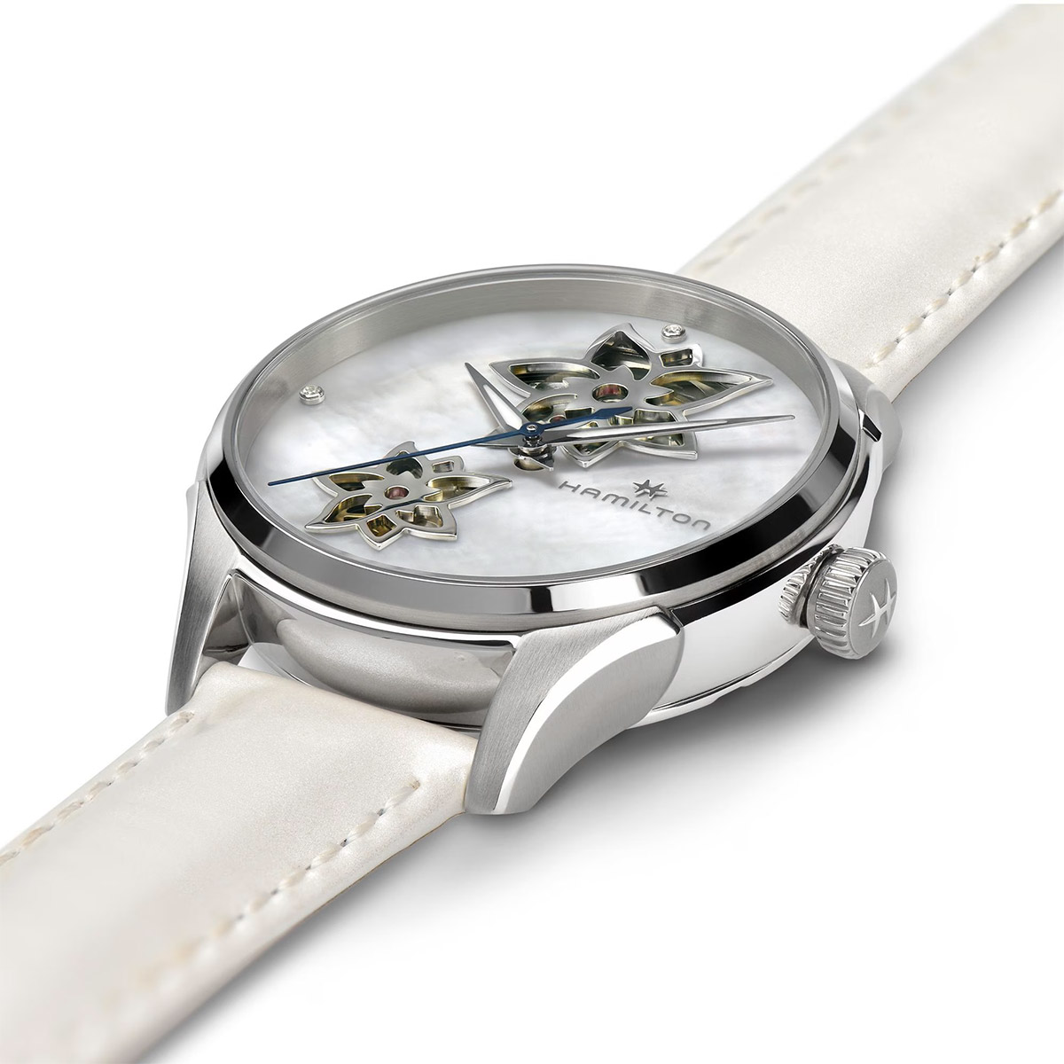 Đối với những người thích những điều tinh tế hơn trong cuộc sống, Jazzmaster Open Heart hấp dẫn bất kể bạn nhìn theo cách nào. Được cung cấp năng lượng bởi bộ máy H-10 và có 80 giờ dự trữ năng lượng, nó mang đến vẻ đẹp thông qua sức mạnh và được tăng cường với mặt số xà cừ và bốn vạch chỉ giờ bằng kim cương.