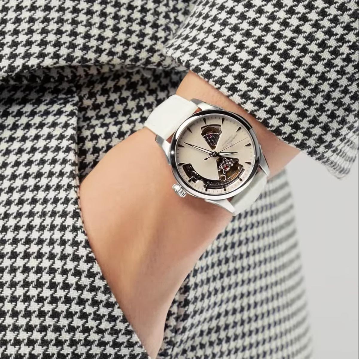 Hamilton Jazzmaster Open Heart 36mm cân bằng hoàn hảo giữa sự tinh tế đương đại với sự khéo léo tinh tế. Thiết kế cắt chính xác cho thấy chuyển động tự động sản xuất tại Thụy Sĩ của chúng tôi đang hoạt động khi nó giữ thời gian trong suốt mọi khoảnh khắc tươi đẹp của cuộc sống. Nhiều sự kết hợp mặt số và dây đeo được làm từ vật liệu chất lượng cao mang đến nhiều lựa chọn cho người phụ nữ hiện đại.