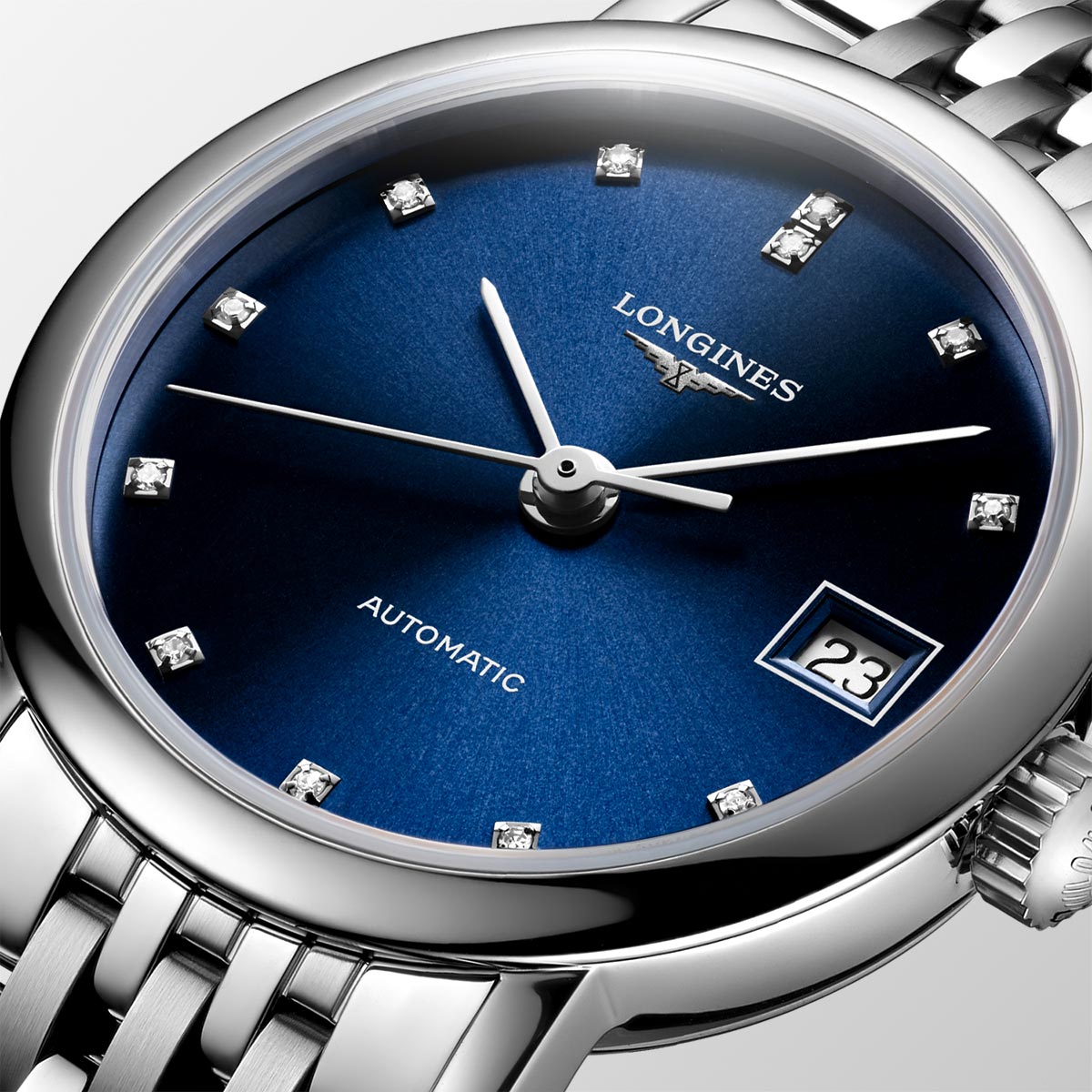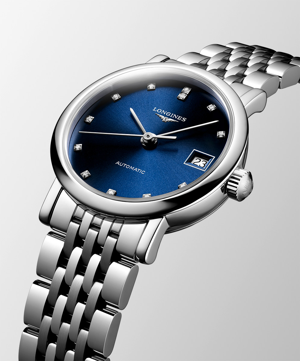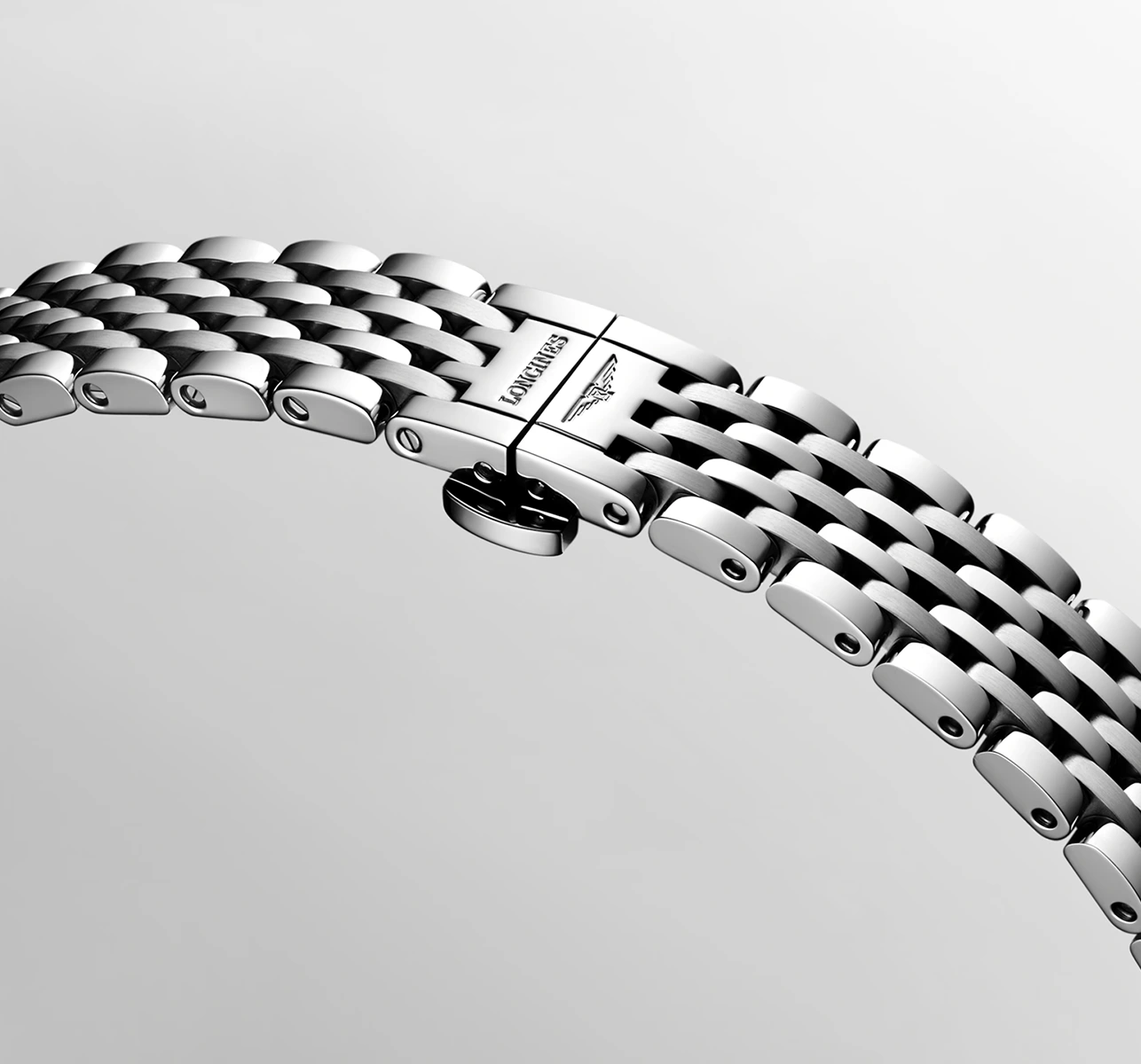 Bộ máy Longines Caliber L592 chuyển động cơ học tự động lên dây cót tốc độ 28'800 rung động mỗi giờ với lò xo cân bằng silicon đơn tinh thể, khả năng trữ cót lên đến 45 giờ. Mặt số đính 12 viên kim cương Top Wesselton VS-SI diamonds, tổng số 0.026 carats.