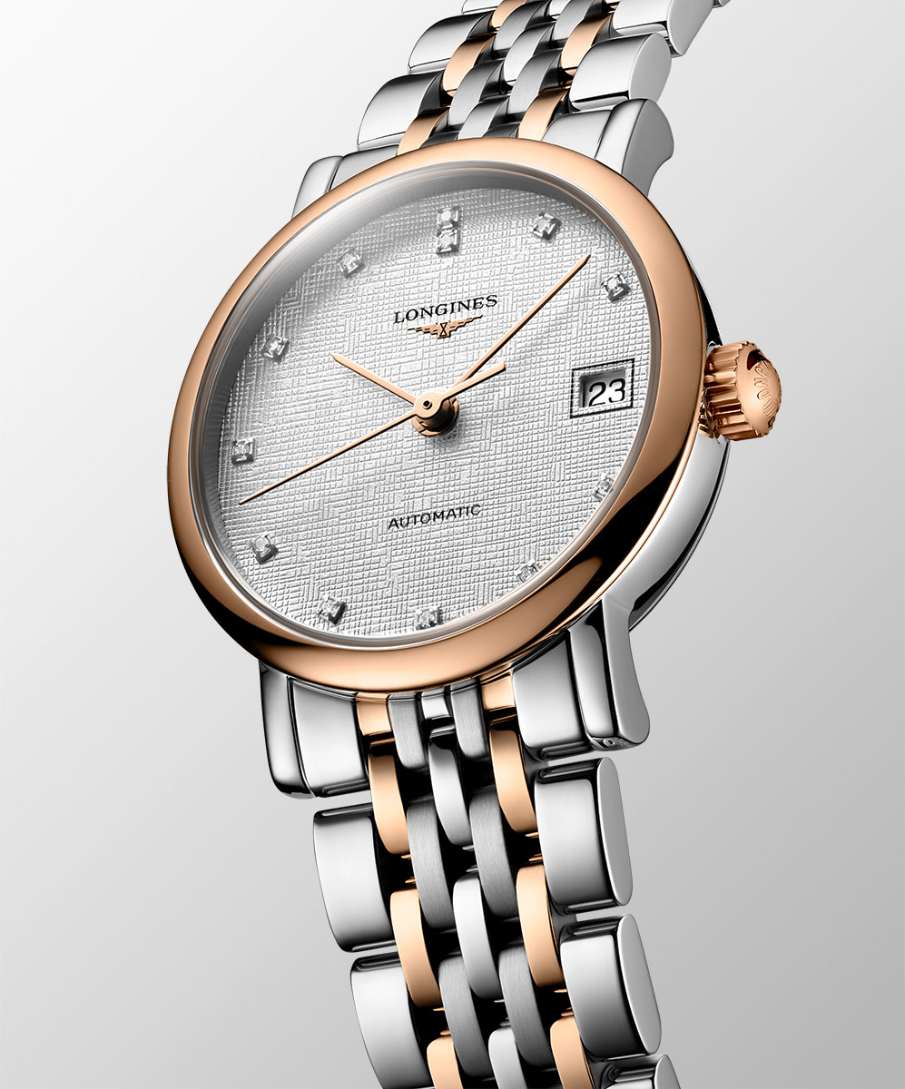 Bộ máy Longines Caliber L592 chuyển động cơ học tự động lên dây cót tốc độ 28'800 rung động mỗi giờ với lò xo cân bằng silicon đơn tinh thể, khả năng trữ cót lên đến 45 giờ. Mặt số đính 12 viên kim cương Top Wesselton VS-SI diamonds, tổng số 0.026 carats.