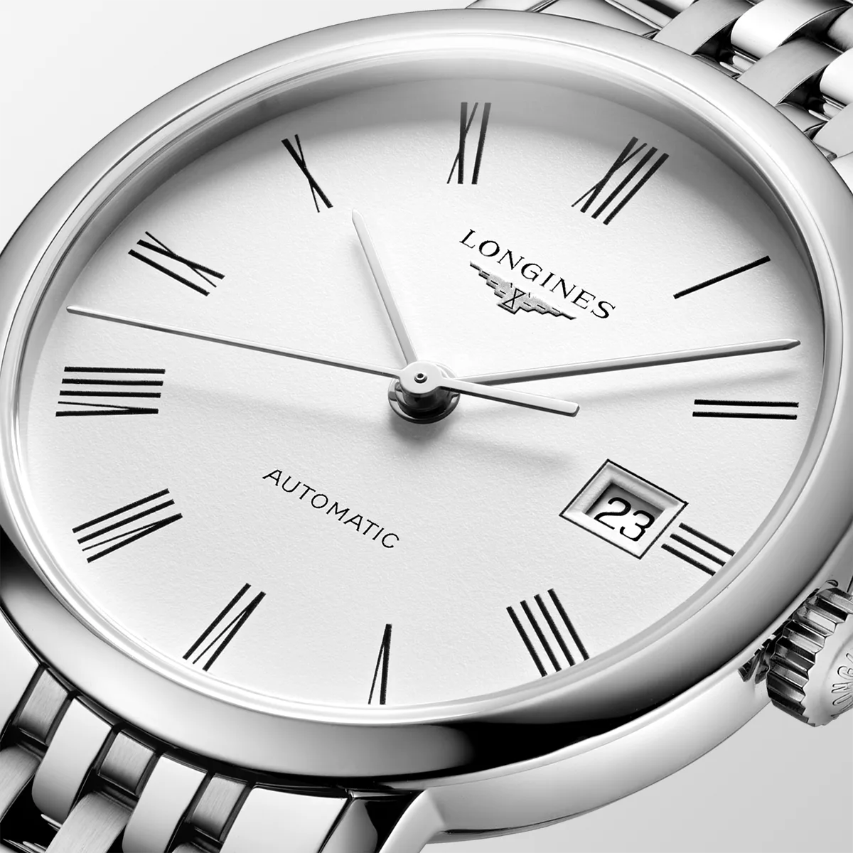 Bộ máy Longines Caliber L592 chuyển động cơ học tự động lên dây cót tốc độ 28'800 rung động mỗi giờ, với lò xo cân bằng silicon đơn tinh thể dự trữ năng lượng lên đến 45 giờ.