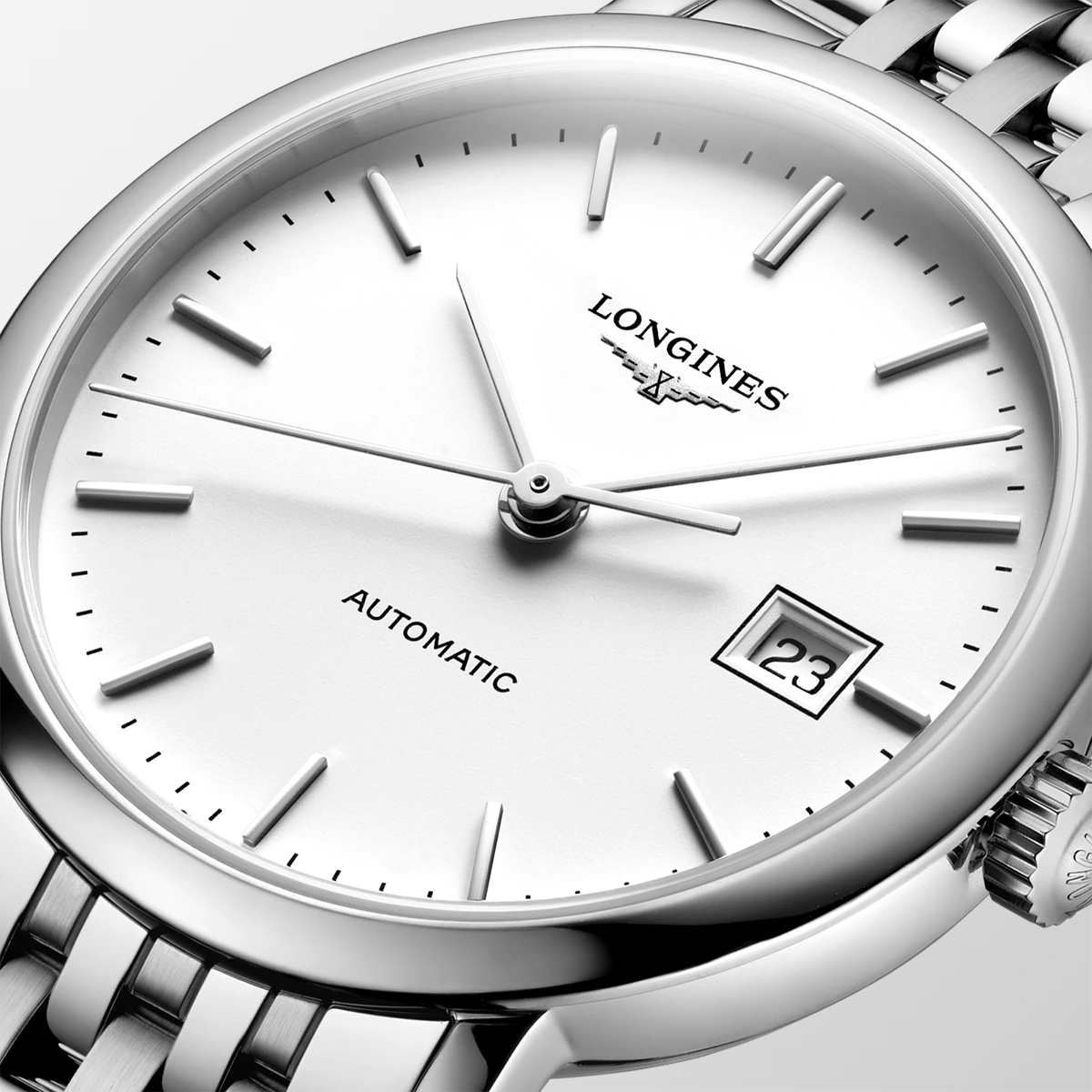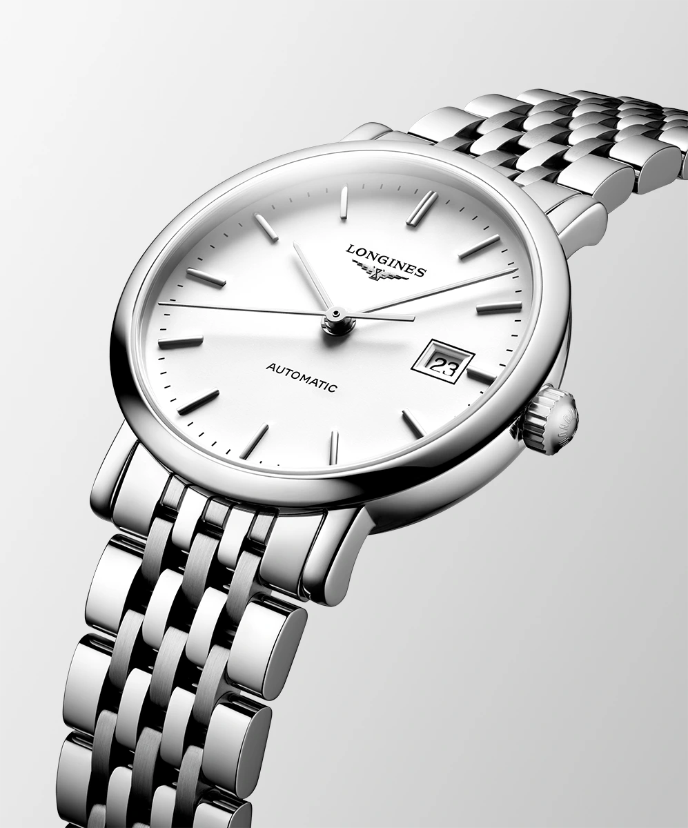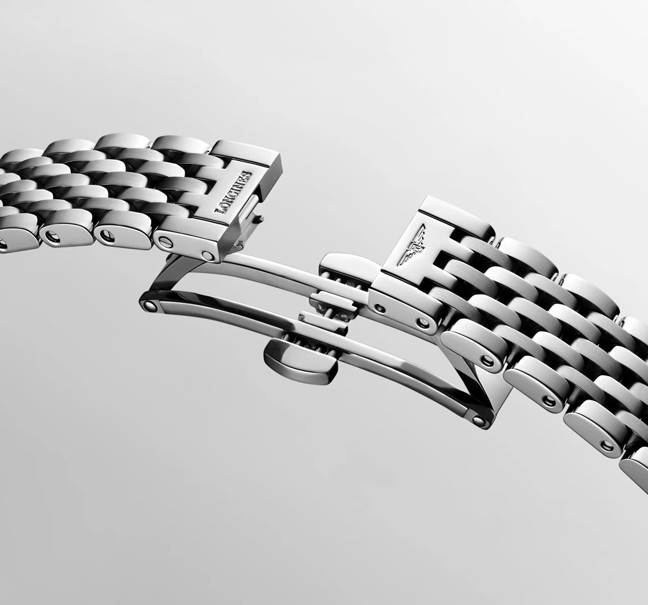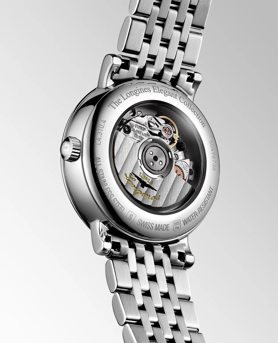 Bộ máy Longines Caliber L592 chuyển động cơ học tự động lên dây cót tốc độ 28'800 rung động mỗi giờ, với lò xo cân bằng silicon đơn tinh thể dự trữ năng lượng lên đến 45 giờ.