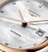 Bộ máy Longines Caliber L592 chuyển động cơ học tự động lên dây cót tốc độ 28'800 rung động mỗi giờ, với lò xo cân bằng silicon đơn tinh thể dự trữ năng lượng lên đến 45 giờ. Mặt số khảm xà cừ & đính 13 viên kim cương Top Wesselton VS-SI diamonds, tổng số 0.029 carats.