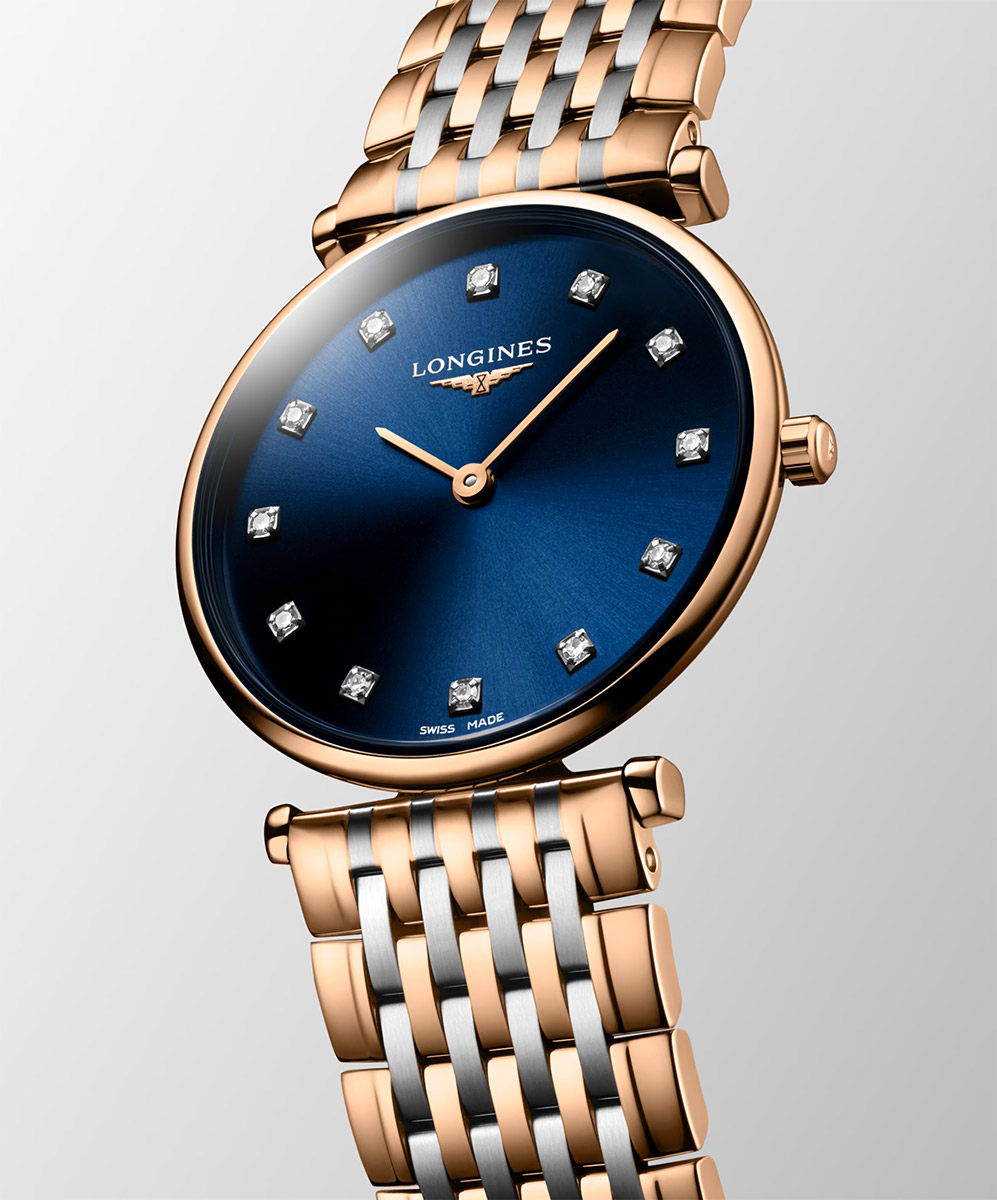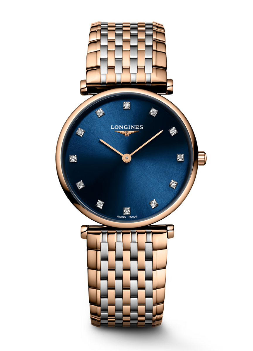 Là biểu tượng cho sự thanh lịch cổ điển và tinh tế vượt thời gian của Longines, dòng sản phẩm này, ra mắt năm 1992, nổi bật với thiết kế mỏng nhẹ, vỏ tròn thanh lịch cùng nhiều kích cỡ, chất liệu và màu sắc đa dạng. Mặt số đính 12 viên kim cương Top Wesselton VS-SI diamonds, tổng số 0.081 carats.