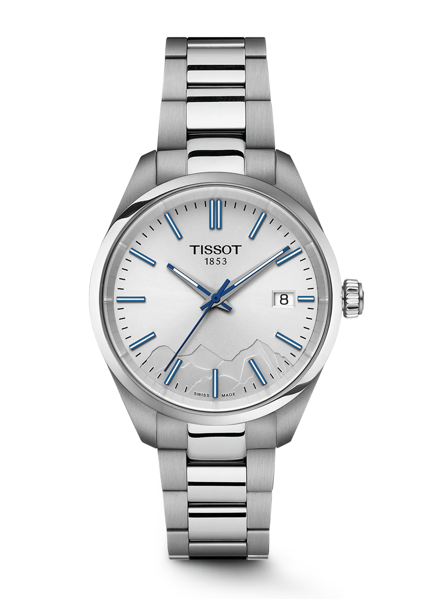 Tissot PR 100 Jungfraubahn, phiên bản đặc biệt ra mắt nhằm tôn vinh di sản Thụy Sĩ với những chiếc đồng hồ độc quyền lấy cảm hứng từ dãy Alps hoang dã và nghề chế tác đồng hồ Thụy Sĩ. Tại điểm giao thoa giữa đất và trời, nơi không khí loãng dần và đường chân trời trải dài vô tận, thời gian mang một nhịp điệu khác biệt—một nhịp điệu được ghi lại trong phiên bản PR 100 Jungfrau. Dãy núi Jungfrau được khắc tinh xảo trên mỗi mặt số, trong khi mặt sau vỏ đồng hồ có dòng chữ 'Jungfrau – Đỉnh Châu Âu', đánh dấu mối liên hệ của Tissot với địa danh được tôn kính này.