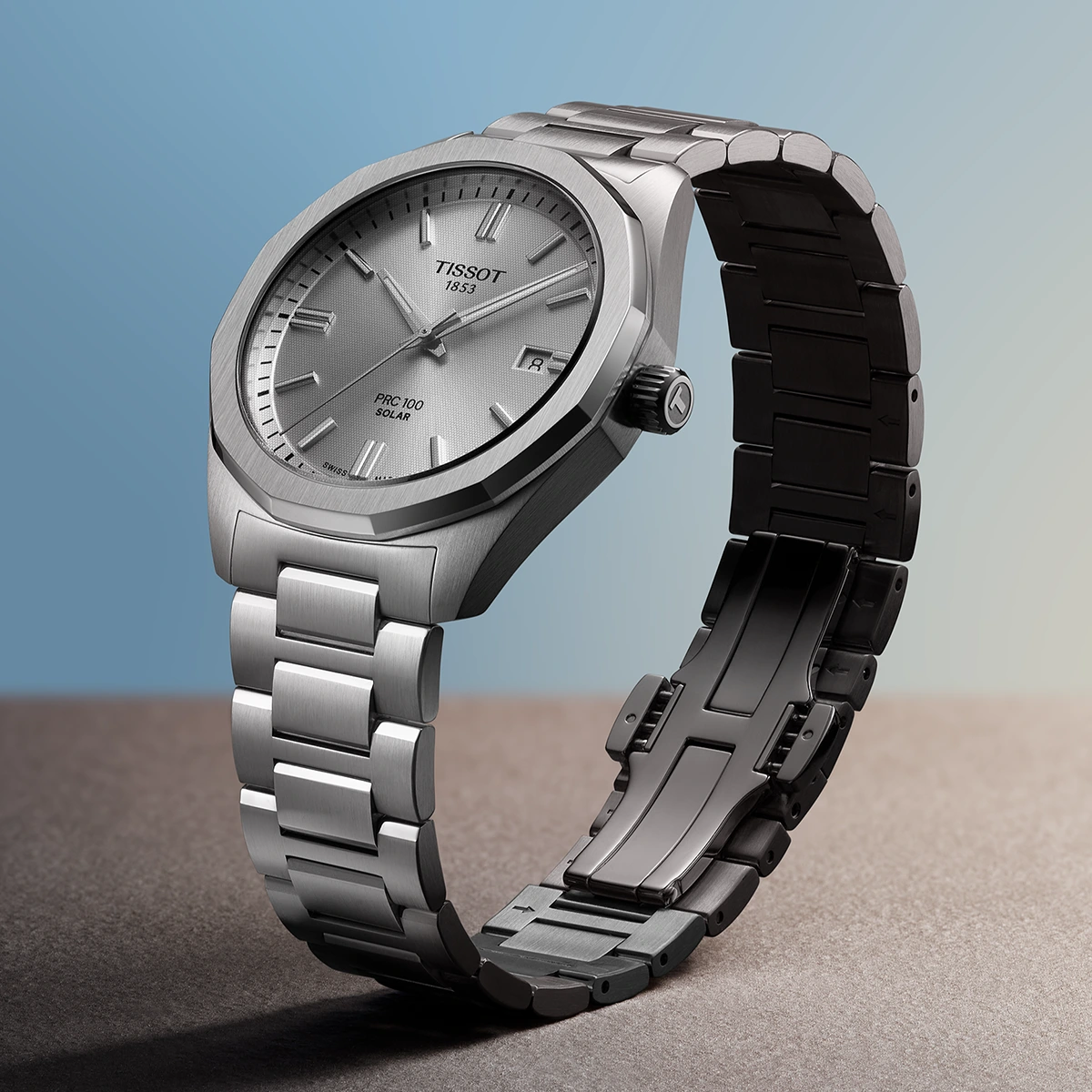 Tissot PRC 100 Solar Quartz, được trang bị công nghệ năng lượng mặt trời Lightmaster của Tissot sử dụng các tế bào quang điện tiên tiến, được tích hợp liền mạch bên dưới lớp kính sapphire và hấp thụ để chuyển đổi ánh sáng tự nhiên và nhân tạo thành năng lượng, cung cấp năng lượng cho đồng hồ luôn hoạt động mọi lúc mọi nơi.