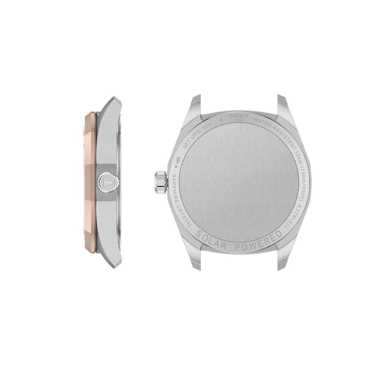 Tissot PRC 100 Solar Quartz, được trang bị công nghệ năng lượng mặt trời Lightmaster của Tissot sử dụng các tế bào quang điện tiên tiến, được tích hợp liền mạch bên dưới lớp kính sapphire và hấp thụ để chuyển đổi ánh sáng tự nhiên và nhân tạo thành năng lượng, cung cấp năng lượng cho đồng hồ luôn hoạt động mọi lúc mọi nơi.