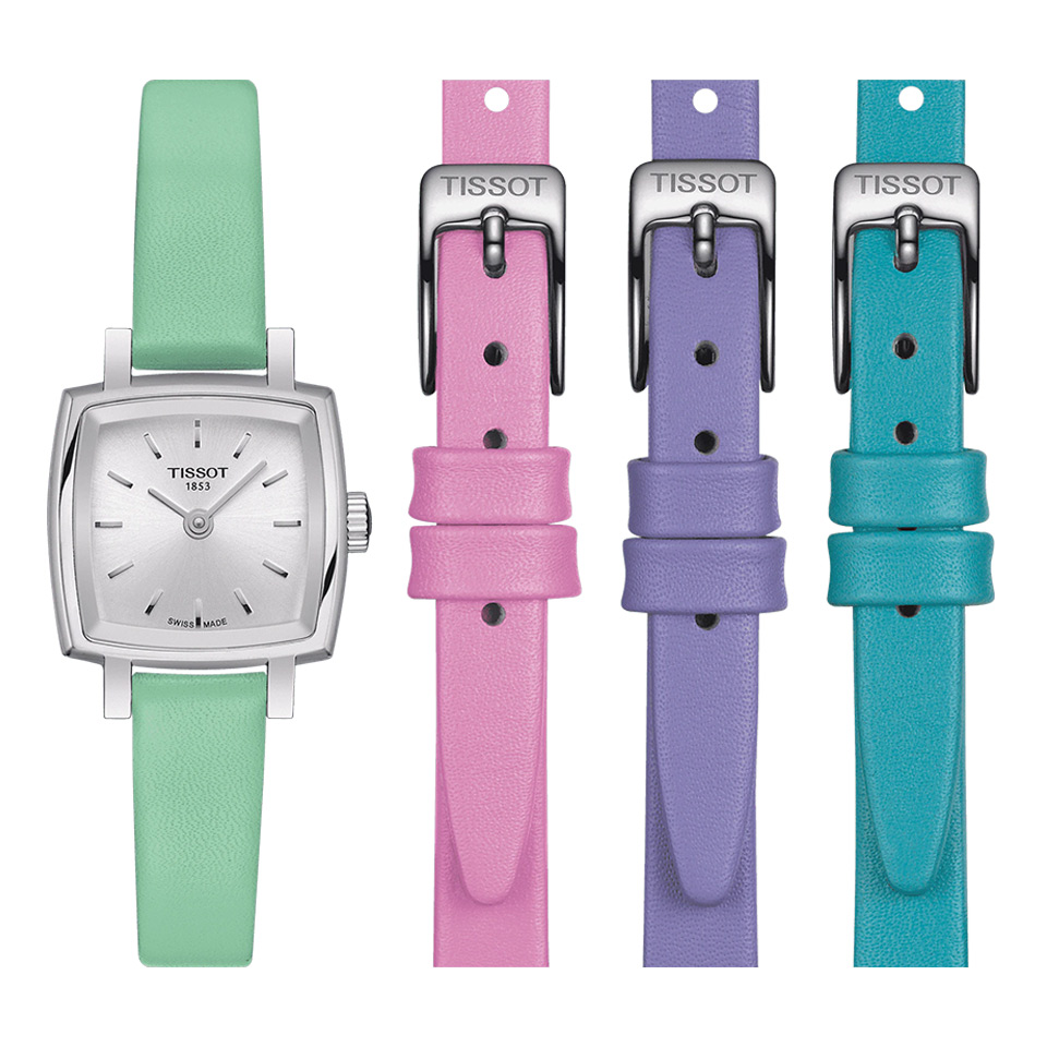 Mẫu đồng hồ Tissot Lovely Summer set, kèm theo 04 bộ dây đeo màu sắc khác nhau với cơ chế tháo dây nhanh, người sử dụng có thể dễ dàng thay đổi dây đeo để phù hợp với trang phục và sở thích.